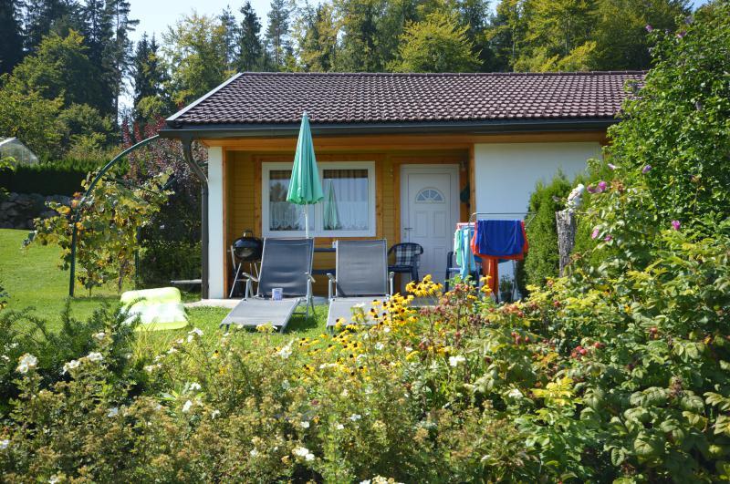 Es erwarten Sie zwei gemütliche Bungalows mit Top-Ausstattung für 2-6 Personen. Die Bungalows befinden sich im Naturschutzgebiet Turnersee in familiärer, kinderfreundlicher Umgebung direkt am Waldrand, ohne Verkehrsaufkommen, nur wenige Gehminuten vom Turnersee und 2km vom Klopeinersee entfernt.