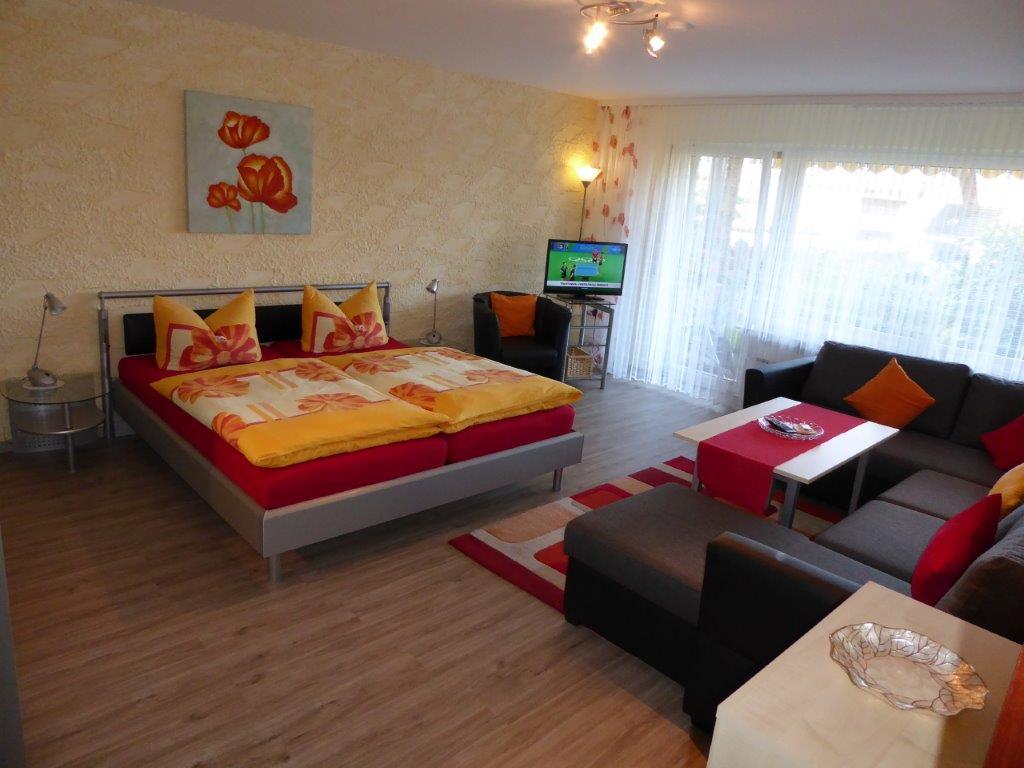 Gemütliche Ferienwohnung in ruhiger, sonniger Süd-West-Lage. Große Terrasse mit Liegewiese. Küchenzeile, Sat.-TV. 2 Wohnschlafräume mit 2x Dusche und WC. Wäsche. Parkplatz am Haus. Mindestaufenthaltsdauer: 3 Nächte.