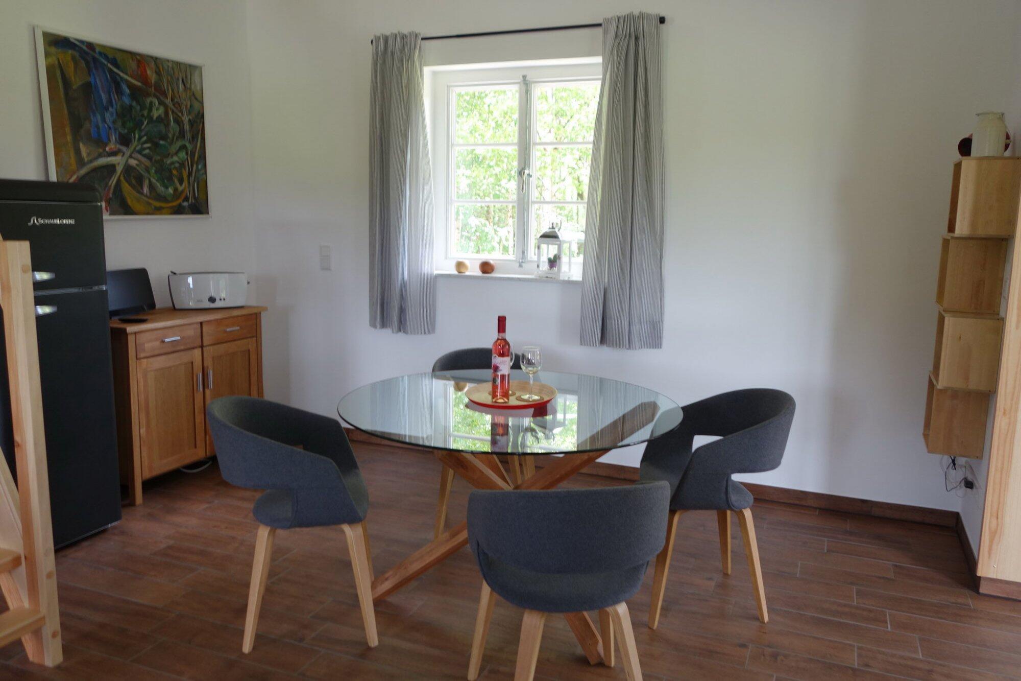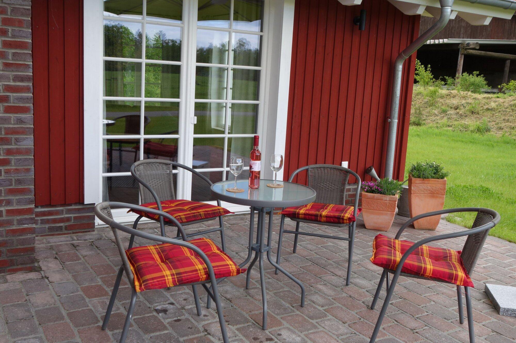 Unser Feriehaus ist 2015 gebaut worden und besitzt vier Schlafgelegenheiten. Vom Haus kann man über Wiesen und Wälder sehen, bis hin zum Moor. Die Natur geniesen und einfach mal den Tieren beim Fressen zugucken, im Sommer von der Terrasse und im Winter vom warmen Ofen aus. Wir freuen uns auf Euren Besuch.