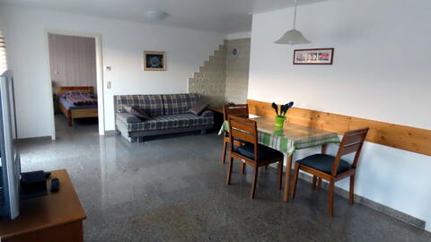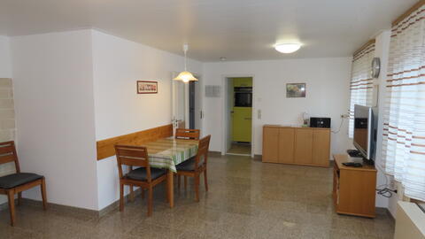 Wohnzimmer: Doppelbett-Schlafcouch, Esstisch mit Platz für vier Personen, SAT-TV (Flachbildschirm), Blu-ray-Player, Stereoanlage, Möbeltresor, kostenloser Internetzugang (Gastzugang). Küche: Moderne Markenküche mit Koch- und Essgeschirr, Induktionskochfeld, Backofen, Kaffeemaschine, Wasserkocher, Geschirrspüler, Mikrowelle, Toaster, Kühlschrank mit Tiefkühlfach sowie Esstisch. Geschirrtücher, Geschirrspülmittel, Reinigungstabs für die Spülmaschine, Kaffeefilter, Backpapier für die Nutzung des Backofens liegen bereit. Schlafzimmer: Mit zwei Einzelbetten und zwei Nachttischen, großer Kleiderschrank und Kommode. Bettwäsche ist vorhanden. Auf wünsch können die Betten auch als Doppeltet zusammengestellt werden. Bad: Neues modernes Badezimmer mit Dusche und WC. Bade- und Handtücher, Toilettenpapier, Seife sind vorhanden. Sonstiges: Waschmaschine und ein Trockner (gegen Gebühr) kann auf Anfrage genutzt werden. Nicht rollstuhlgeeignet. Das Rauchen ist in der Ferienwohnung nicht erlaubt, aber zum Rauchen kann die Terrasse benutzt werden. Haustiere sind nicht erlaubt. Die Ferienwohnung ist mit Heizung ausgestattet und kann ganzjährig genutzt werden.