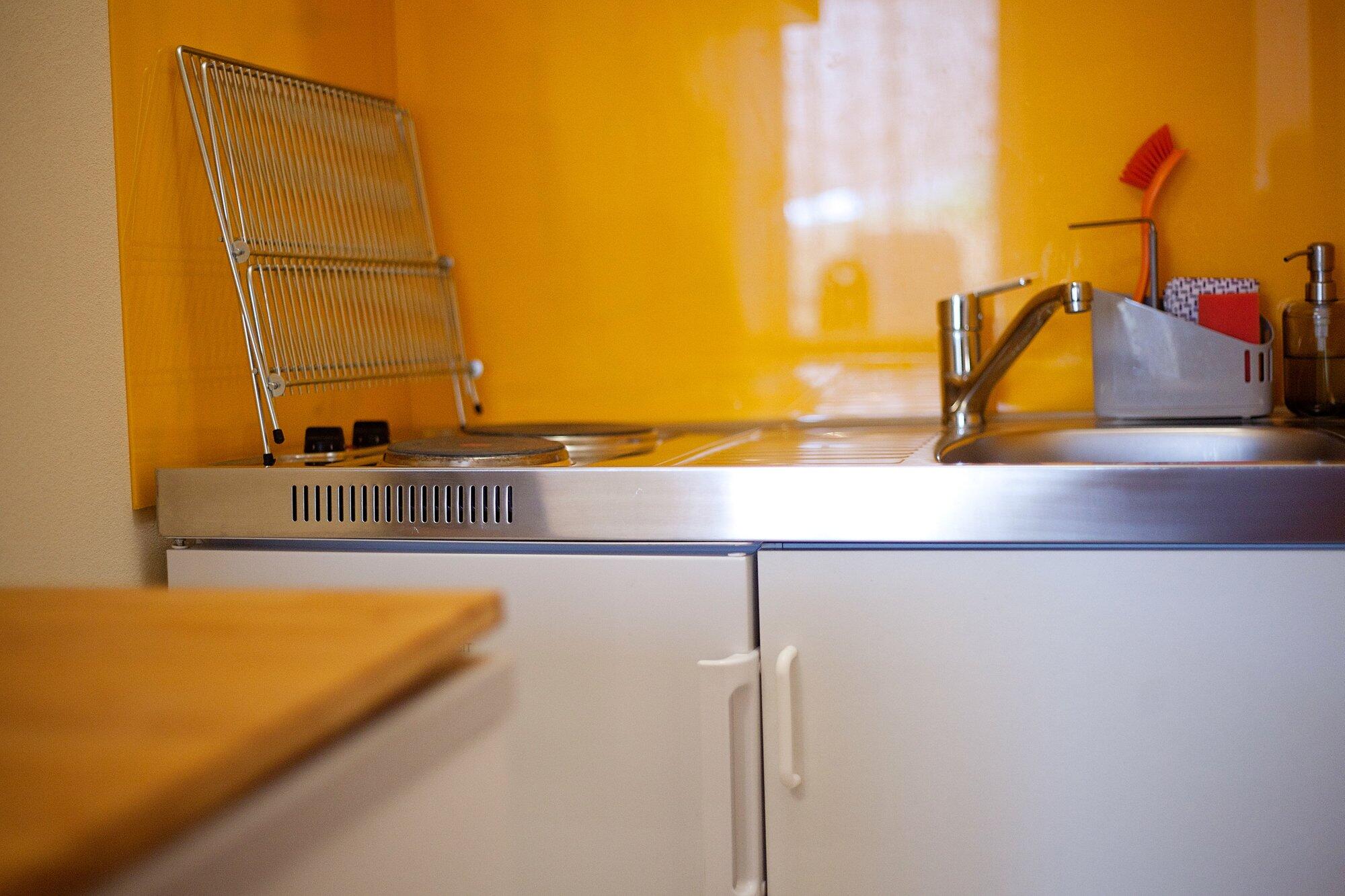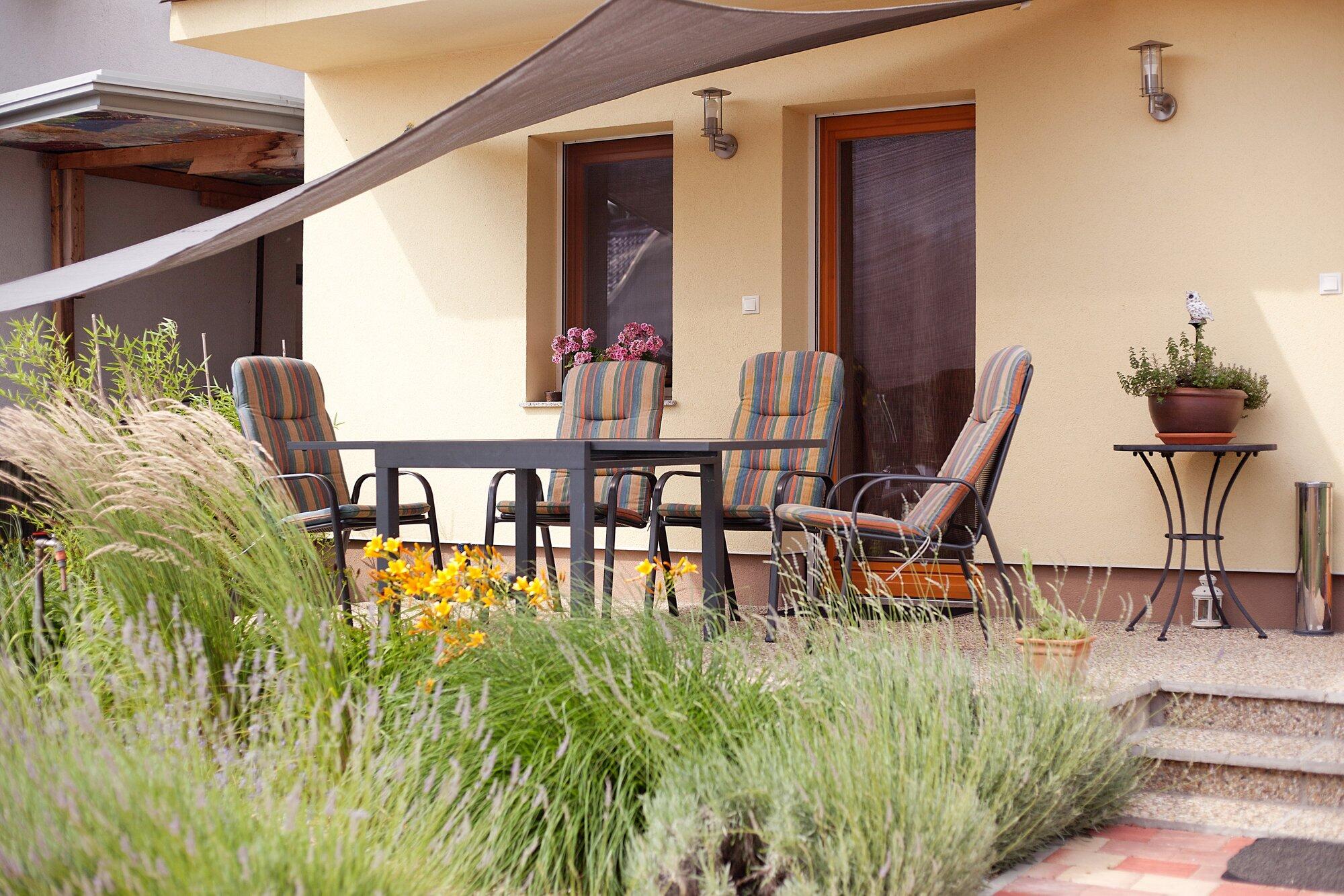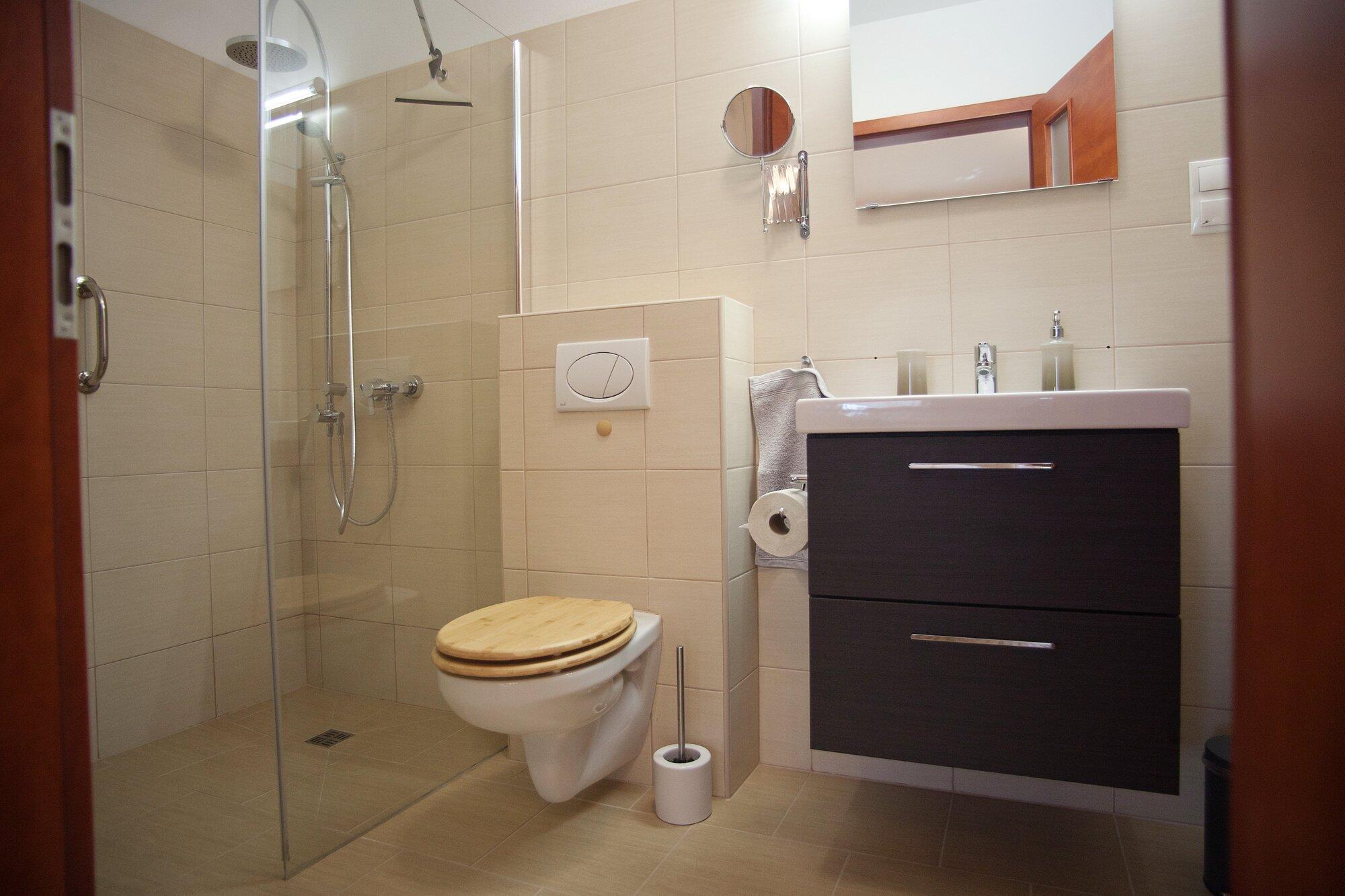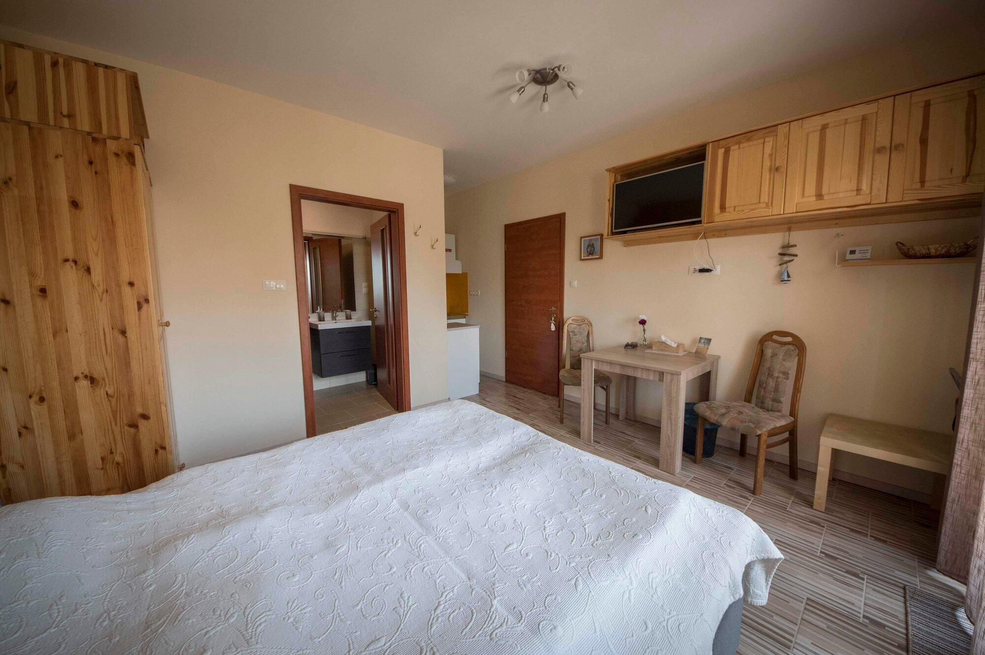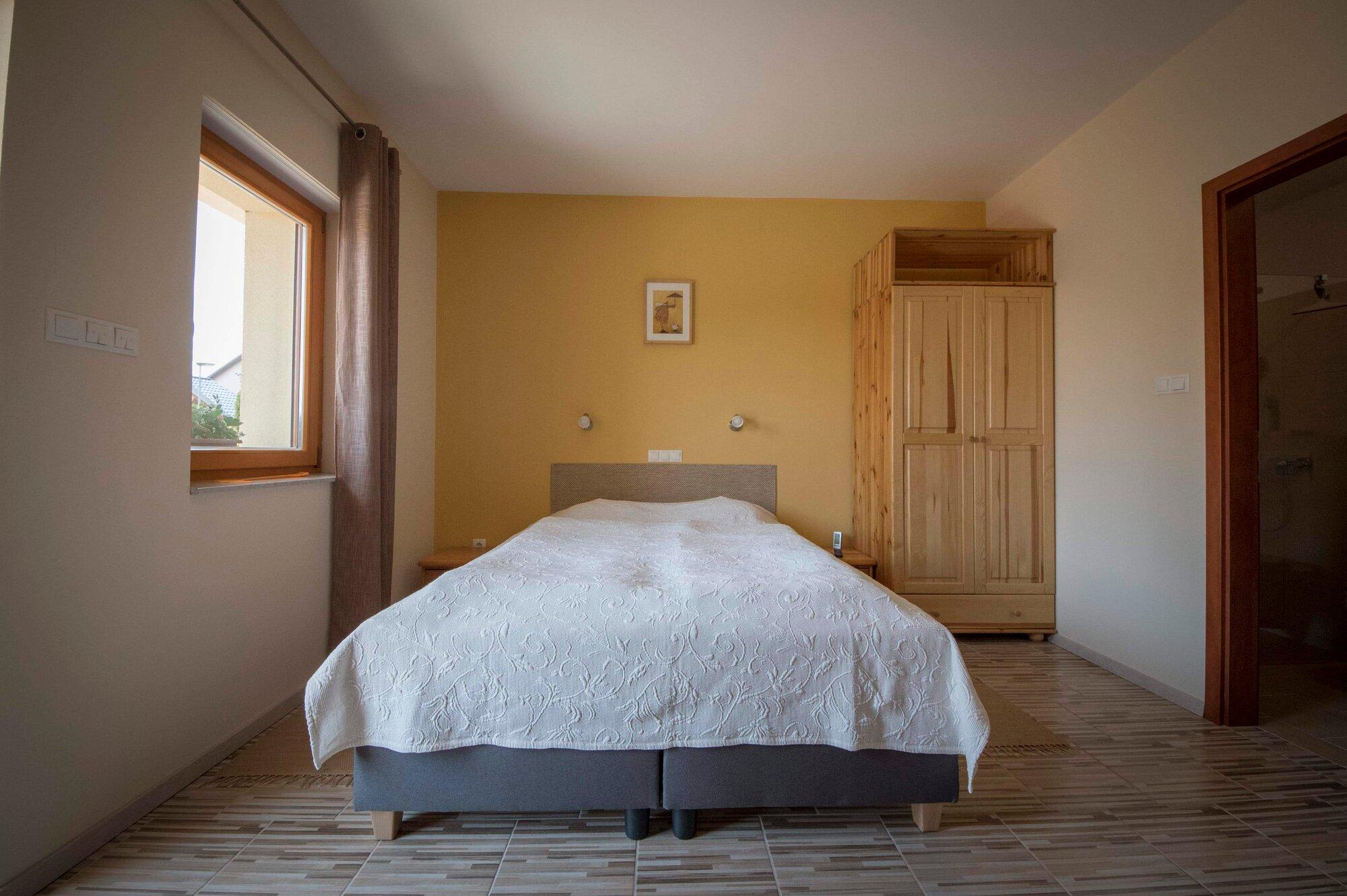 Appartement (45 m2): modern eingerichtetes Appartement bestehend aus 2 Zimmern (Gästezimmer und Gästestudio siehe unten) mit Rollläden, Vorzimmer, 2 x Dusche/WC, einer Miniküche und Terrasse. Das Appartement befindet sich in einem in 2017 erbauten Einfamilienhaus, und ist durch eine schallgedämpfte Tür vom Wohnbereich der Eigentümer getrennt. Für max. 4 Erwachsene buchbar, Zusatzbett nicht möglich. Gästezimmer (11 m2): mit Doppelbett (160 x 200 cm), Kleiderschrank, SAT TV, Tisch mit Stühlen. Badezimmer (3,2 m2) mit Dusche, WC, Handwaschbecken und Föhn. Gästestudio (15 m2): mit Doppelbett (160 x 200 cm), Kleiderschrank, Oberschrank, SAT TV, Tisch mit Stühlen, möblierte Terrasse. In der Nische (1,2 m2) befindet sich die Miniküche mit 2 Kochplatten, Kühlschrank, Wasserkocher, Kaffeemaschine und Küchengeschirr. Badezimmer (4,2 m2) mit Dusche, WC, Handwaschbecken und Föhn.