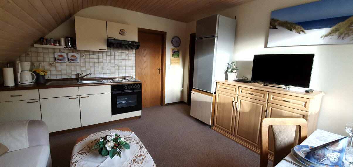 Das Ferienhaus Gut ausgestattete Küche hier wird es Ihnen an nichts fehlen Elektroherd mit Ceranfeld und Backofen,Kühlschrank mit Gefrierfach, Mikrowelle, Backformen, Mixer, Eierkocher,Geschirrspülmaschine, Wasserkocher,Kaffeemaschine, Toaster,Hifi-Anlage,Besteck und Geschirr für 12 Personen u.v.m. Damit Sie im Haus vor Mücken und Fliegen geschützt werden, ist zur Terrasse eine Insektenschutztür eingebaut.Terrasse mit Grillplatz von der Küche aus haben Sie direkten Zugang zur Terrasse. Hier können Sie sich bei einem guten Buch entspannen und ein Sonnenbad genießen. Eine Ferienwohnung für 2 Personen... ankommen,sich wohlfühlen und entspannen.Die ca. 30 qm große Wohnung ist gemütlich eingerichtet und befindet sich in der ersten Etage mit separaten Eingang. Holte-Spangen ist der ideale Urlaubsort für Pferdefreunde und Reiter.Die Strände sowie Discounter, Ärzte,Apotheke,Bäcker und Restaurants erreichen Sie in wenigen Autominuten. Besuchen Sie das Restaurant Spanger Buernstuv in Holte - Spangen,oder fahren Sie von hier aus mit dem Wattfahrten zur Insel Neuwerk. Haustiere dürfen leider keinen Urlaub bei uns machen.Nichtraucherobjekt Wir freuen uns auf Sie. Wir haben für Sie im Holzhäuschen Auflagen für die Stühle und Liegen,sowie Grill und Sonnenschirm bereit gestellt.