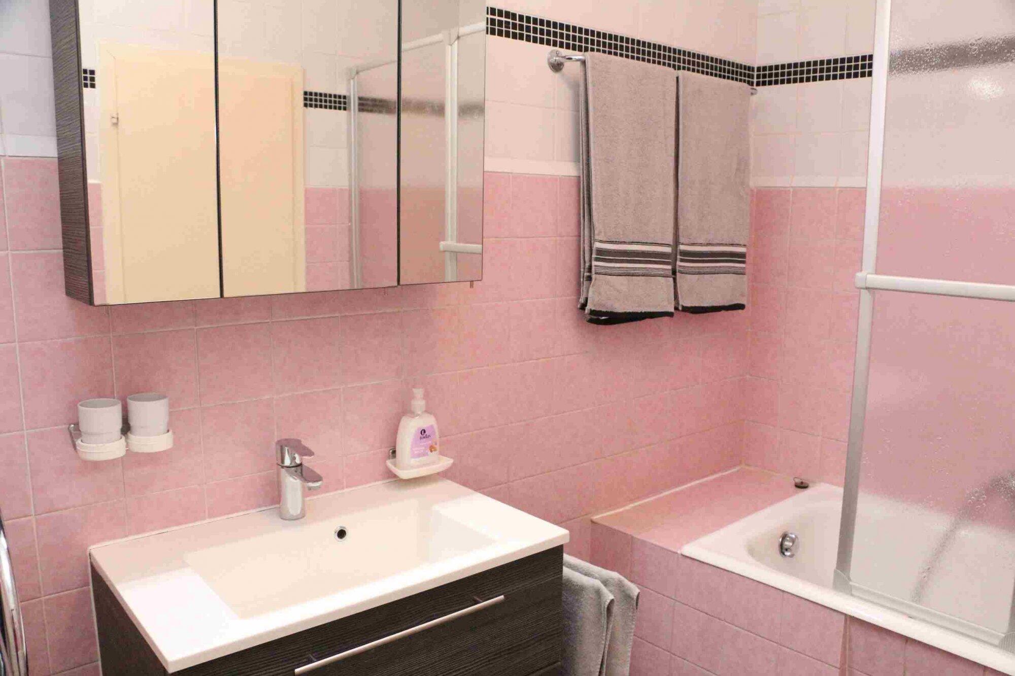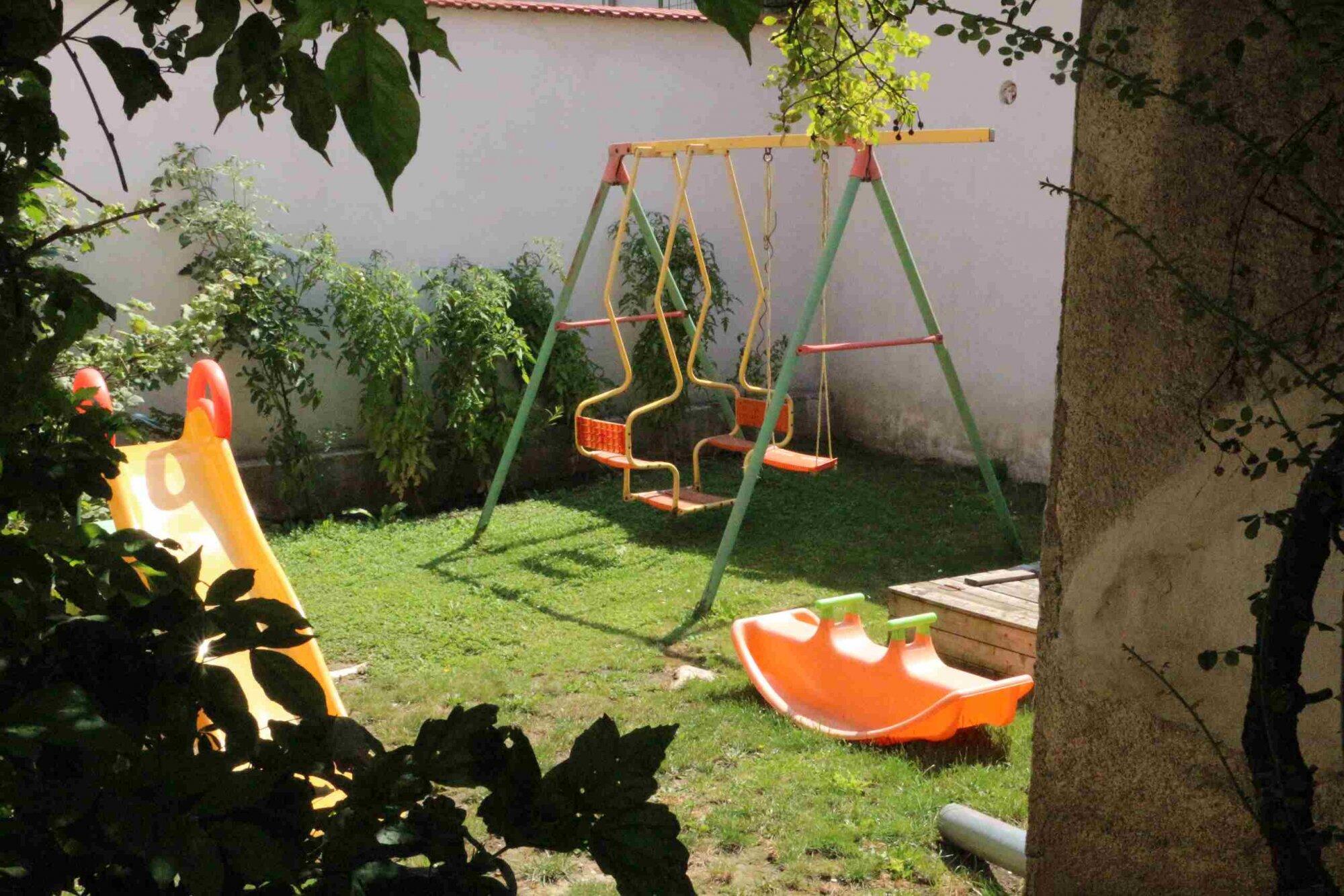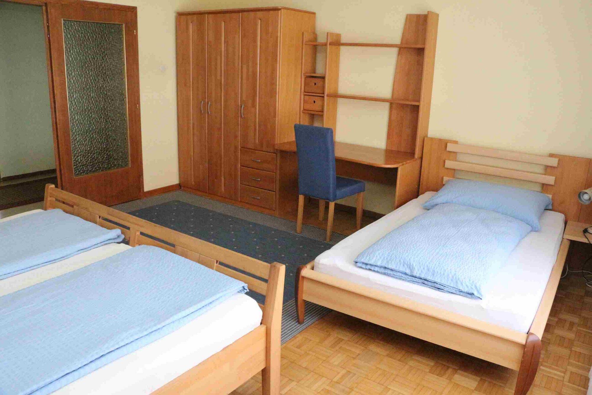 Badezimmer und separatem WC. Die Küche ist mit Kühlschrank mit 3-Sternekühlfach, 4-Plattenherd mit Cerankochfeld, separatem Backrohr, Mikrowellenherd, Geschirrspüler, Kaffeemaschine, Wasserkocher und sämtlichem Koch- und Tafelgeschirr ausgestattet - Sat-TV. Schlafzimmer mit Doppelbett für 2 Personen und Einzelbett (1,20 m breit)), 1 Schlafzimmer mit Doppelbett - maximale Personenanzahl: 5. Tisch-, Bett- und Handtücher werden zur Verfügung gestellt. Badezimmer mit Wanne und Duschwand. Separates WC. Waschmaschine im Badezimmer. Schöner Garten mit Liegewiese , Swimmingpool und Grillmöglichkeit. Parkmöglichkeit vor dem Haus. Fahrradeinstellmöglichkeit. Kinderfreundlich. Gitterbett, Hochstuhl und anderes Zubehör für Kleinkinder vorhanden.Kleiner Kinderspielplatz.