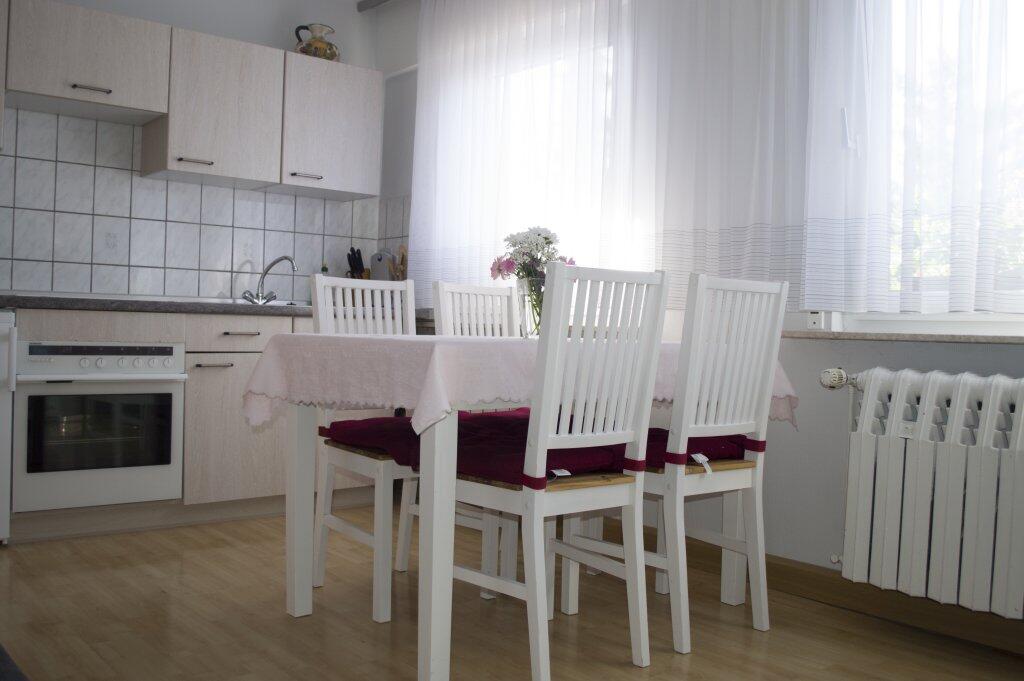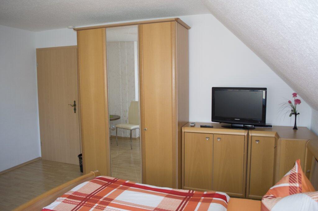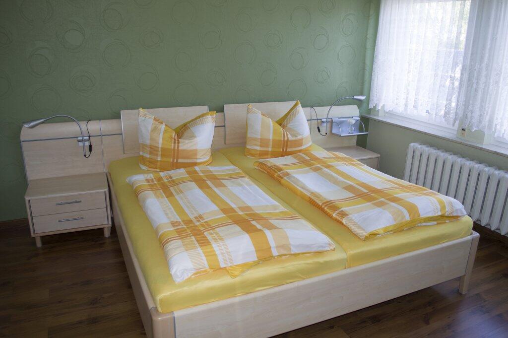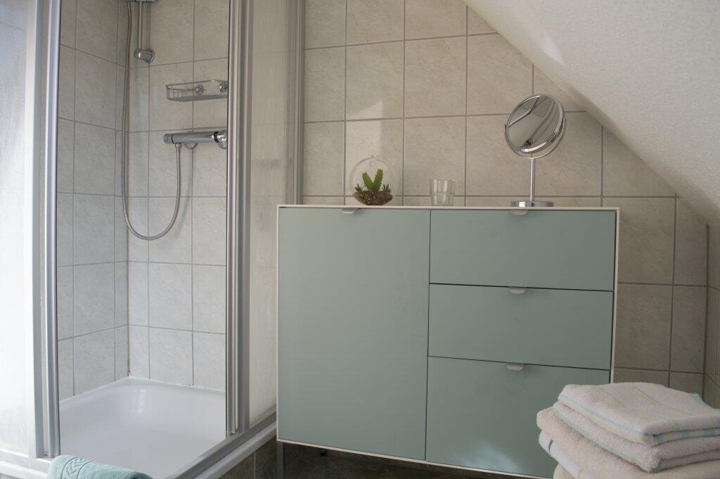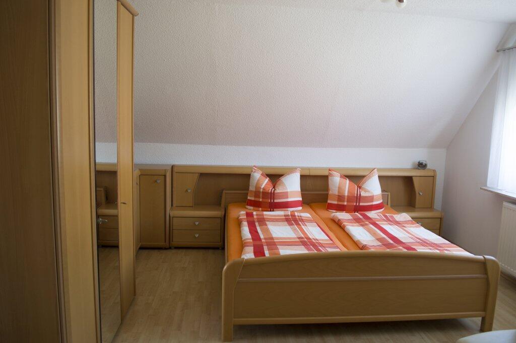 Die Ferienwohnung befindet sich in der 1. Etage. Es gibt 2 Wohn / Schlafräume. Jedes Zimmer hat ein Bad mit Dusche und WC, also ideal für 2 Paare. Alle Zimmer wurden von uns modern eingerichtet. Ein Kinder-Reisebett steht zur Verfügung.