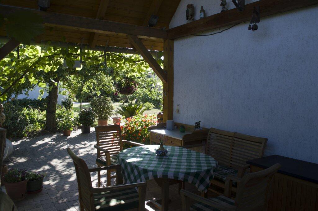 Im Garten hinter unserem Haus können Sie in einer Sitzecke wunderbar entspannen, grillen, lesen , ein Glas Rotwein trinken oder einfach nur die Seele baumeln lassen. Der Parkplatz für Ihr Auto befindet sich auf dem Grundstück.