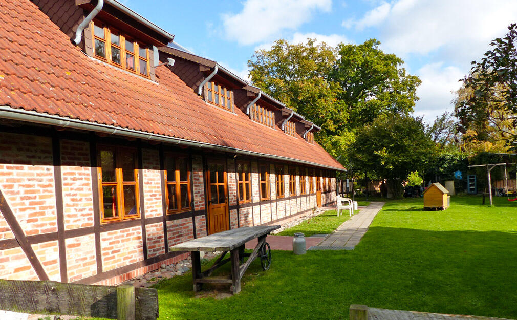Die schöne und sonnenreiche Insel bietet seinen Gästen kilometerlange Sandstrände, eine beeindruckende Kreideküste mit dem berühmten Königsstuhl, Steilküsten am Kap Arkona und seine Leuchttürme, viele Wälder, Boddengewässer, eine kleine Schwesterinsel Hiddensee und viele Ortschaften mit traditionellen Häfen. Unser alter, idyllischer und ca. 10.000 qm großer Bauernhof im Familienbetrieb liegt am Rande des Dorfes Wiek auf der Insel Rügen in ruhiger Lage. Das Gästehaus, die Scheune, wurde im ländlichen Stil neu gebaut und 1995 eröffnet. 2014 haben wir ein zweites Gästehaus eröffnet. Der großzügig angelegte Hof bietet nicht nur Familien, sondern auch Ehepaaren Erholung vom hektischen Alltag. Unseren Gästen stehen eine große Liegewiese (2000 qm) mit Kinderspielplatz, Spielbus, Grillecken sowie Parkplätze zu Verfügung. Im Tiergehege warten unsere Esel und viele andere Tiere auf Ihre Streicheleinheiten.