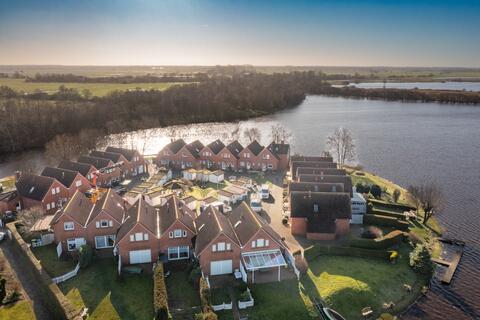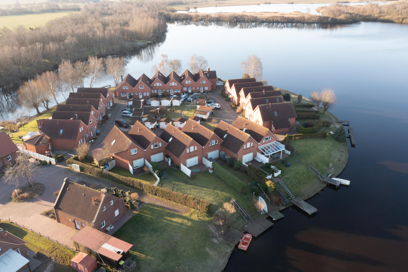 Unser Ferienhaus in Timmel/Großefehn mitten im Herzen Ostfrieslands ist sehr komfortabel und gemütlich (Naturholzmöbel) mit viel Liebe zum Detail eingerichtet. Es liegt auf einer Landzunge direkt im Timmeler Meer und ist nur über eine Straße (Övert Meer) zu erreichen. Der Inselhof, auf dem die 24 Einfamilienhäuser stehen, ist durch eine Schrankenanlage von der Zufahrtsstraße abgetrennt. Eine Induktionsschleife bzw. ein Druckschalter sorgen für die problemlose Ein- und Ausfahrt. Für Ihren Pkw ist ein Stellplatz direkt am Haus reserviert. In einem kleinen Geräteschuppen stehen die Fahrräder, der Bootsmotor (Benutzung auf Anfrage), Bollerwagen und die Gartenmöbel, Liegen, Stühle usw. Das Haus hat eine Wohnfläche von 85m² Unser Haus liegt direkt am Wasser des Timmeler Meeres. Über den Kanal erreichen Sie nach ca. 50 m das offene Wasser. Direkt an den Garten angrenzend (vom Wohnzimmer aus ca. 12 m) ist der Boots-, Bade- und Angelsteg. Von dort aus können Sie mit dem hauseigenen Ruderboot Fahrten auf dem Timmeler Meer und den angrenzenden Kanälen (Bagbander- und Fehntjer Tief) unternehmen. Ihr Weg könnte Sie bis nach Oldersum durch die Schleuse auf die Ems führen. Dieses ist jedoch für eine Ruderpartie zu weit. Deshalb bieten wir auch zweckmäßigerweise einen Außenbordmotor, der zusätzlich gemietet werden kann, für etwas weitere Ausflüge an.