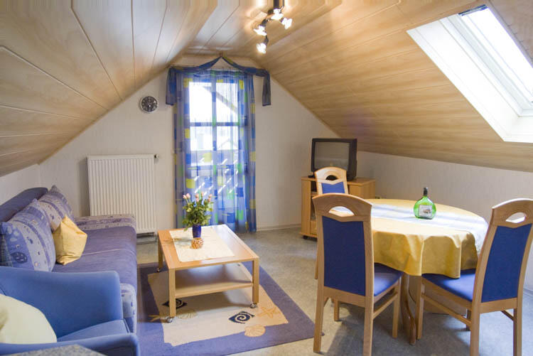 Ferienwohnung 1 Großzügige Wohnung, ca. 65 qm, geeignet für 2-6 Personen, Lage Richtung Osten, Wohn-/Esszimmer, 2 getrennte Schlafzimmer mit je zwei Betten, Küche, Bad mit Dusch und WC, Garderobe, sowie überdachter 18 qm großer Balkon mit Markise. Ferienwohnung 2 Großzügige Wohnung, ca. 65 qm, geeignet für 2-6 Personen, Lage Richtung Westen, Wohn-/Esszimmer mit Küche, 2 getrennte Schlafzimmer, mit Doppelbett und zusätzlicher Schlafcouch und zwei Einzelbetten, Küche, Bad mit Dusch und WC, Garderobe, sowie überdachter Balkon mit Markise. Ferienwohnung 3 Sehr gemütliche Dachwohnung, ca. 40 qm, geeignet für 2 Personen, 2 überdachte Balkone in Ost- und Westrichtung, Schlafzimmer mit Doppelbett, Küche mit Wohnbereich, Bad mit Dusche und WC.