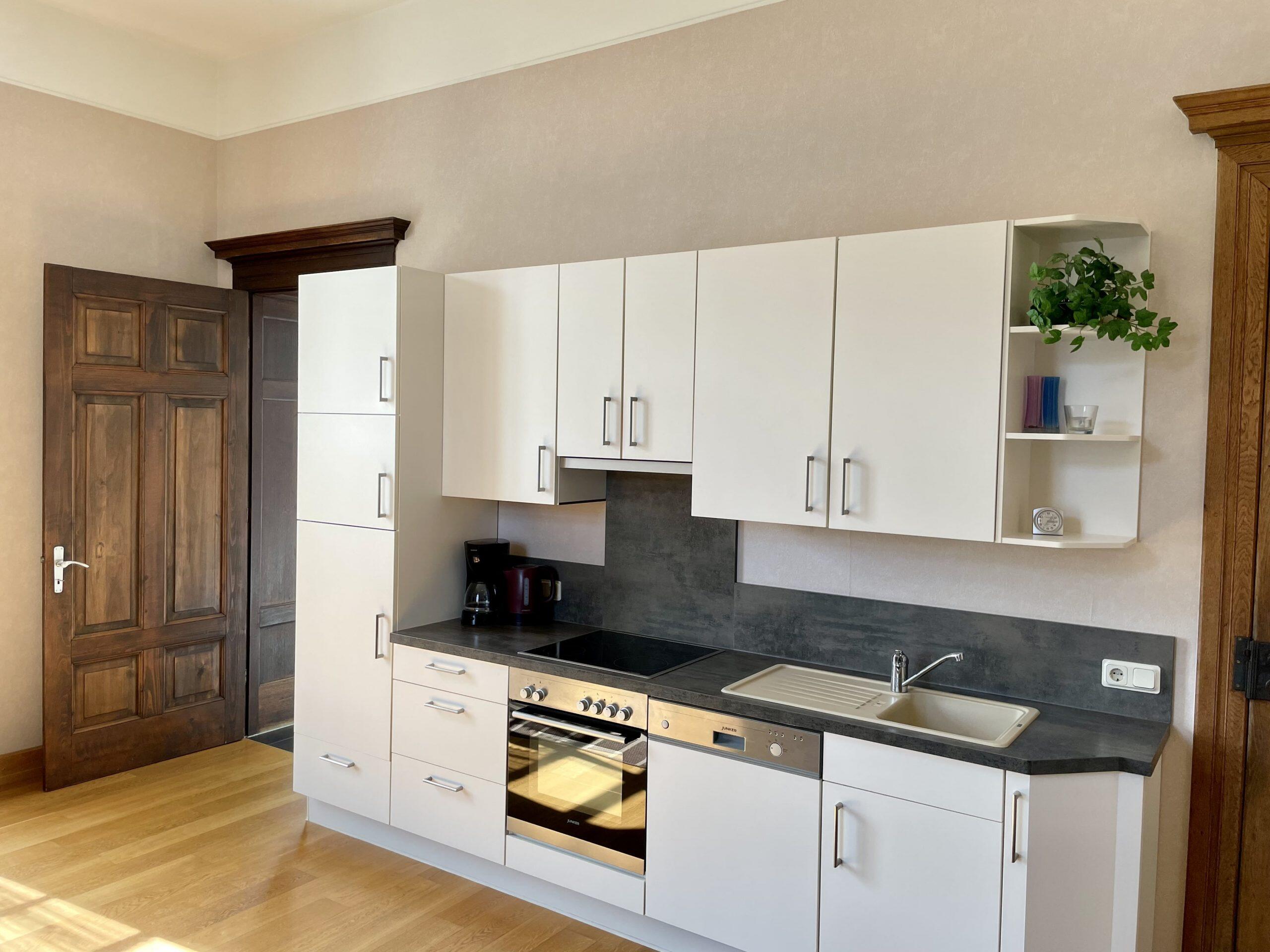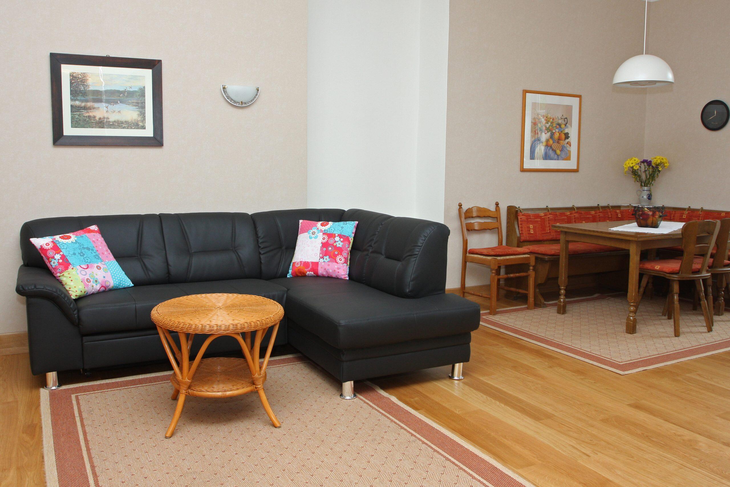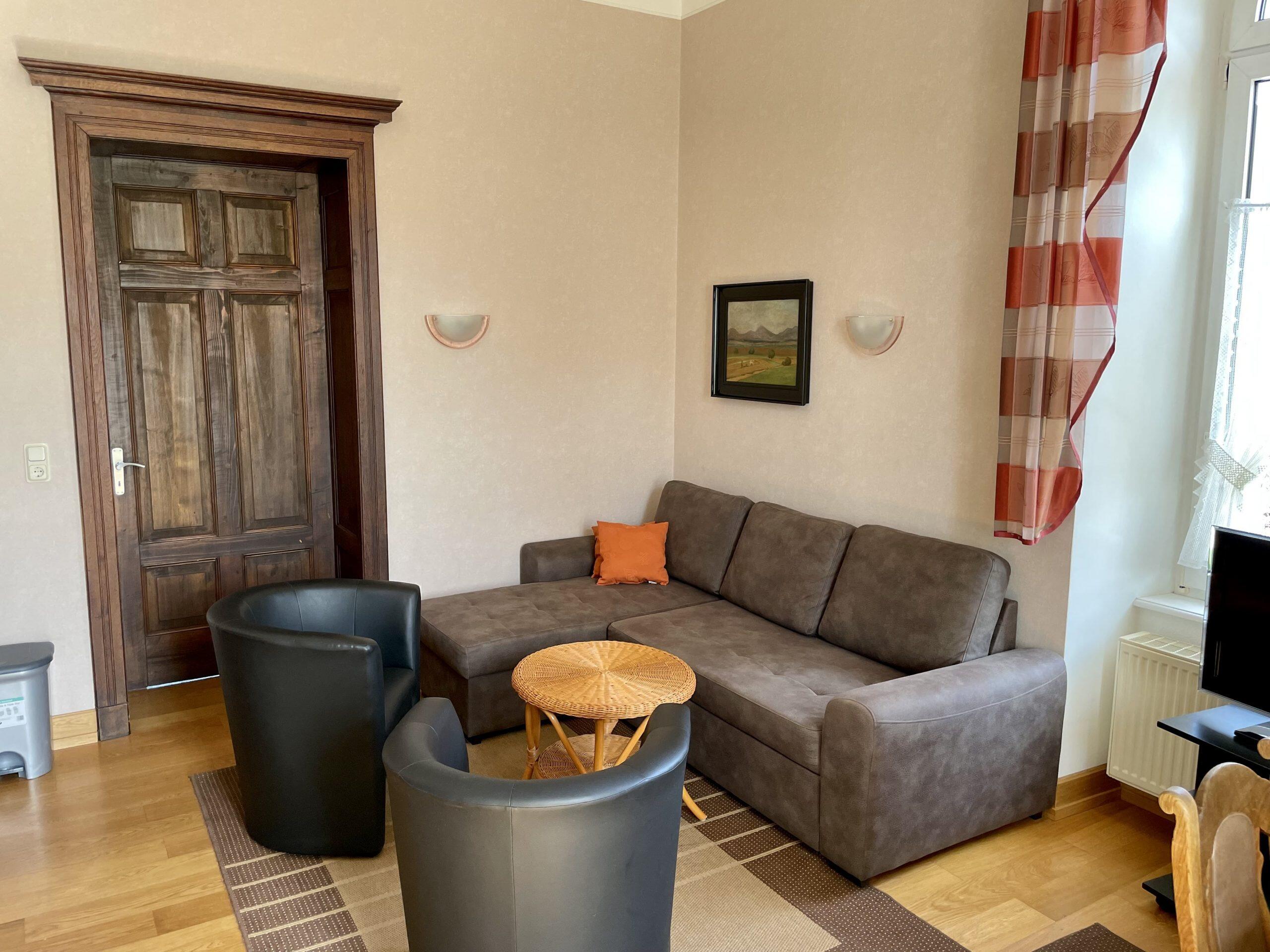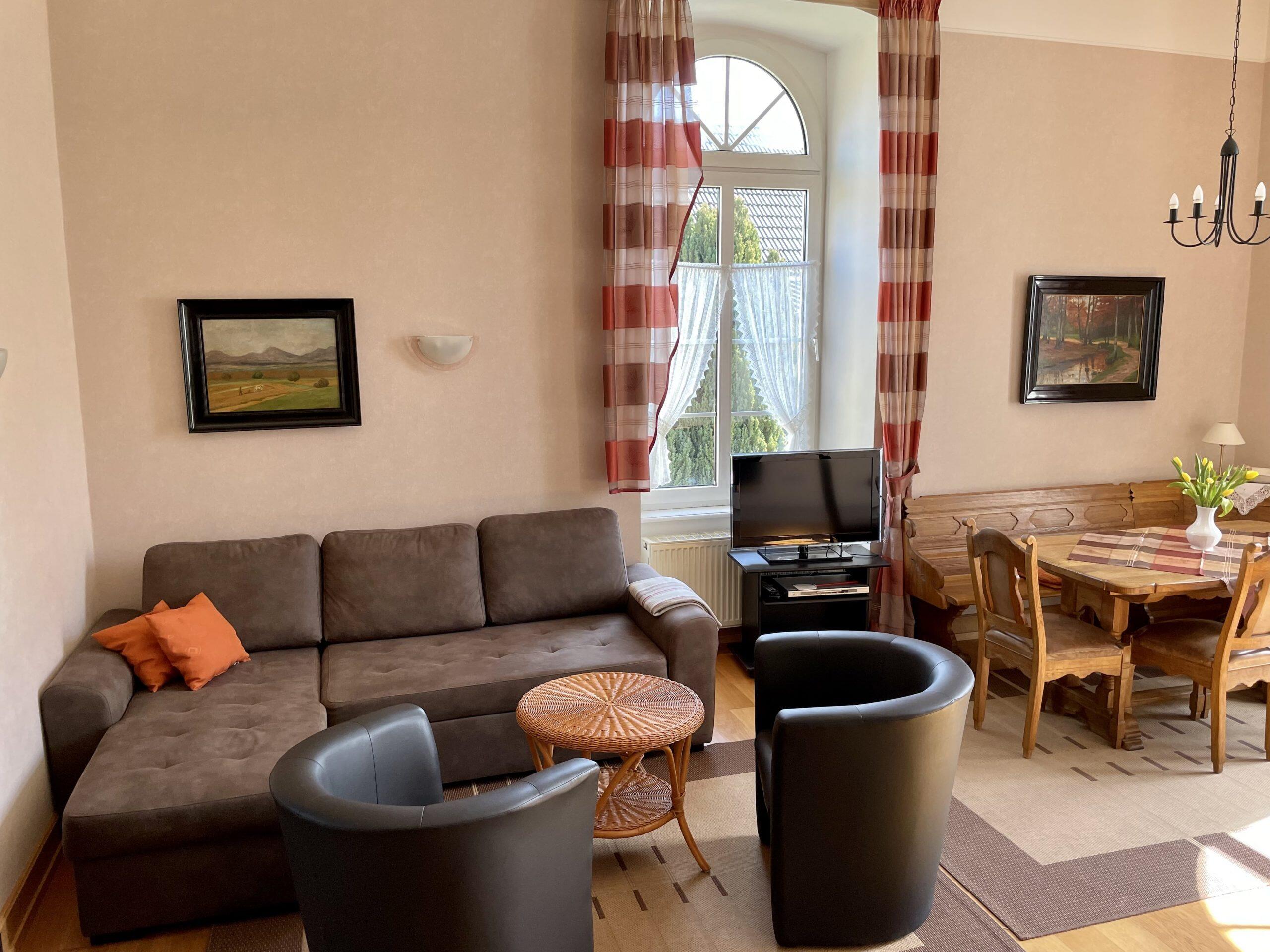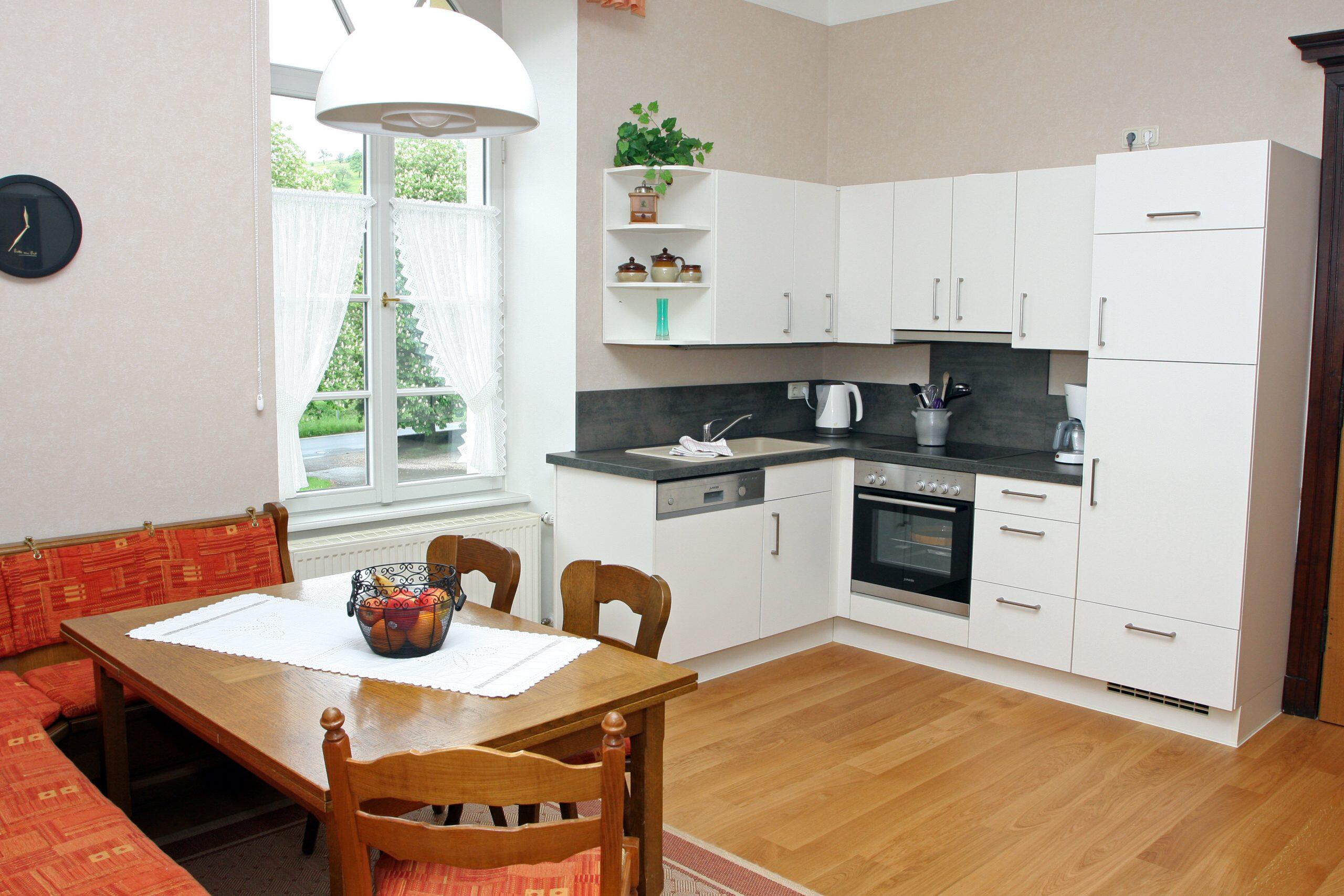 Die Ferienwohnung Gutsherrenstube befindet sich im Erdgeschoß und verfügt über zwei getrennte Doppelschlafzimmer, eine offene große Küche (komplett eingerichtet mit Ceranfeld-Platten-Herd, Backofen, Geschirrspülmaschine, Kühlschrank mit Gefrierfach, etc.) in einem großen Wohnraum mit bequemer Sitzgruppe, Dusche und WC. Gerne stellen wir Ihnen Kinderbetten zur Verfügung. WLAN ist auch vorhanden!