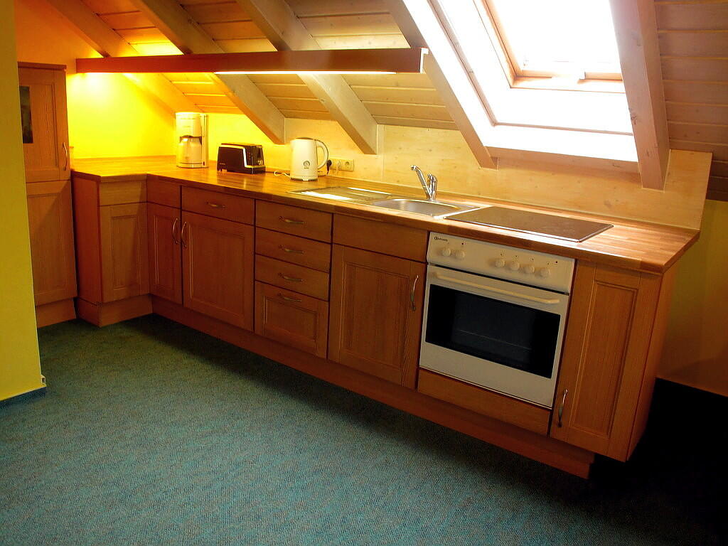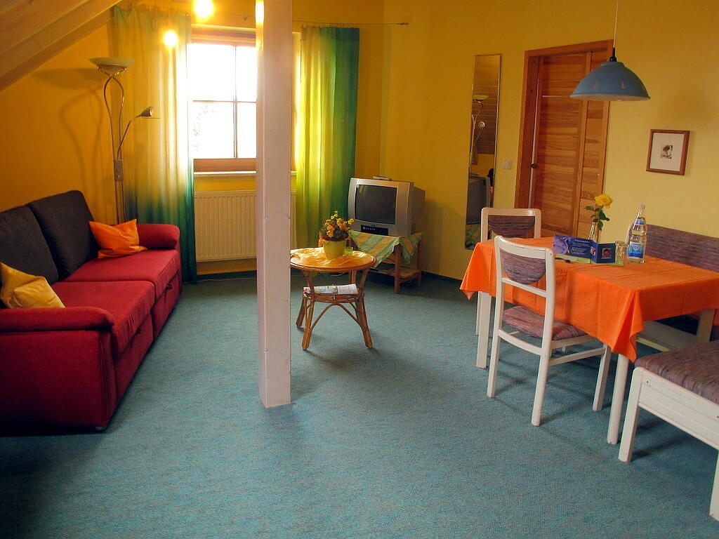 40 m² für 2 Personen Schlafsofa (+2 Personen. extra) Schlafzimmer Dusche / WC großer Wohnraum, Sofa, Küchenzeile und Essecke