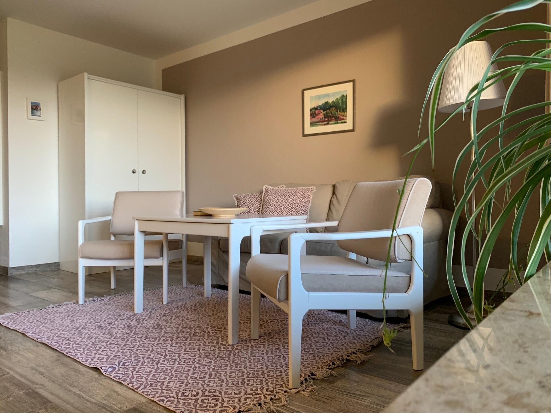 In 8 hellen großzügigen, zur Südseite gelegen Ein-Raum-Apartments, können Sie sich ganzjährig erholen und entspannen. Dazu trägt jeweils auch ein schöner Balkon oder Terrasse bei, um den Ausblick auf unseren Garten, Nachbars Heidschnucken und den nahegelegenen Golfplatz zu genießen.