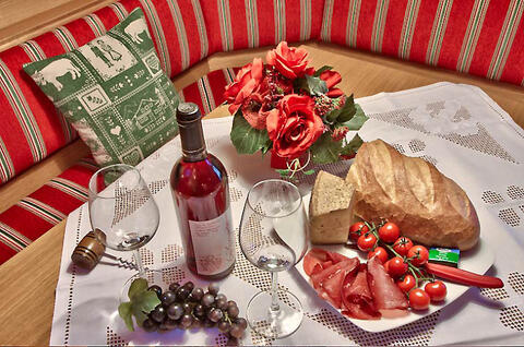 Genießen Sie Ihre Brotzeit in der Abendsonne mit Blick auf die Hörnerkette!