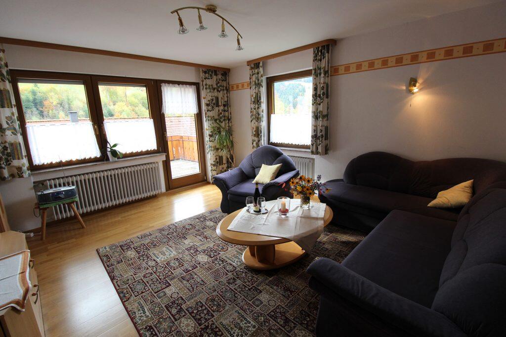 Diese kuschelige Ferienwohnung mit kleinem Balkon verfügt über eine schöne Wohnküche, Badezimmer und einem Schlaf-Wohnraum. Die Wohnung hat einen herrlichen Blick ins Tal und in den nahe gelegenen Tannenwald. Parkplätze stehen selbstverständlich kostenlos zur Verfügung.