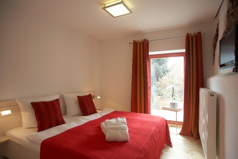 Alle Zimmer in der Scheune verfügen über Dusche/WC, Haarföhn, Telefon, Sat-TV, Wecker, WLAN und sind nach Südwesten ausgerichtet.