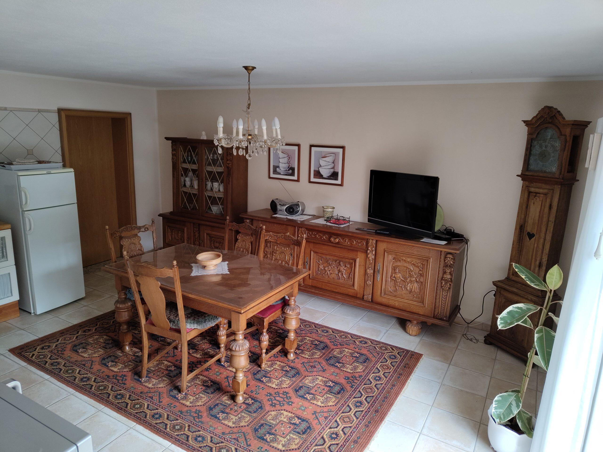Wohnküche (Küchenzeile, Spülmaschine, E-Herd mit Ceranfeld, Backofen, Mikrowelle, Kaffeemaschine, separater Standkühlschrank mit Gefrierfach, SAT TV), Duschbad.