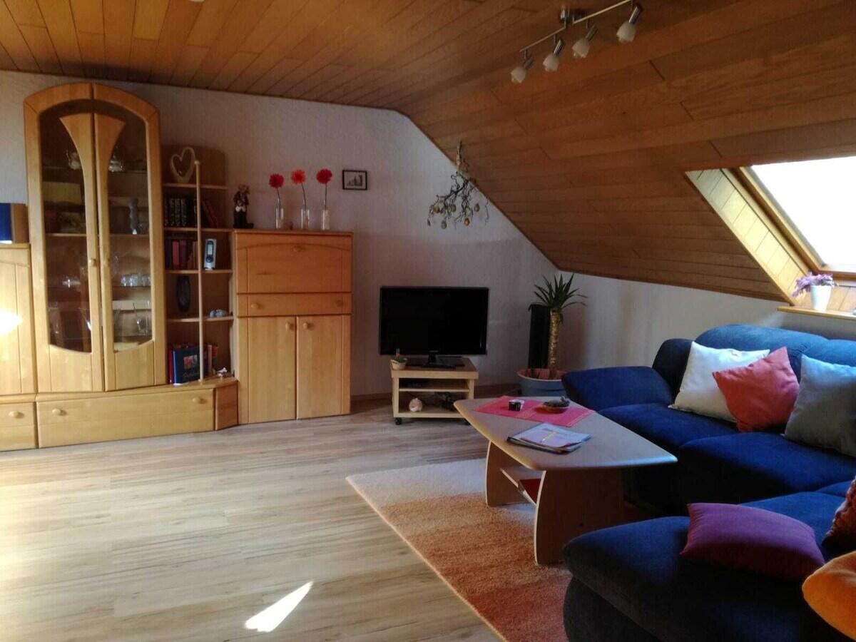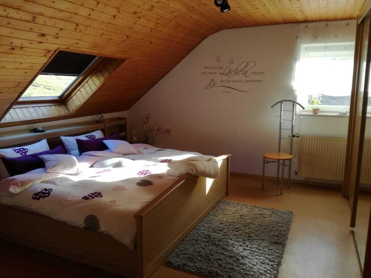Unsere 4 Sterne Ferienwohnung 90qm befindet sich im Dachgeschoß und