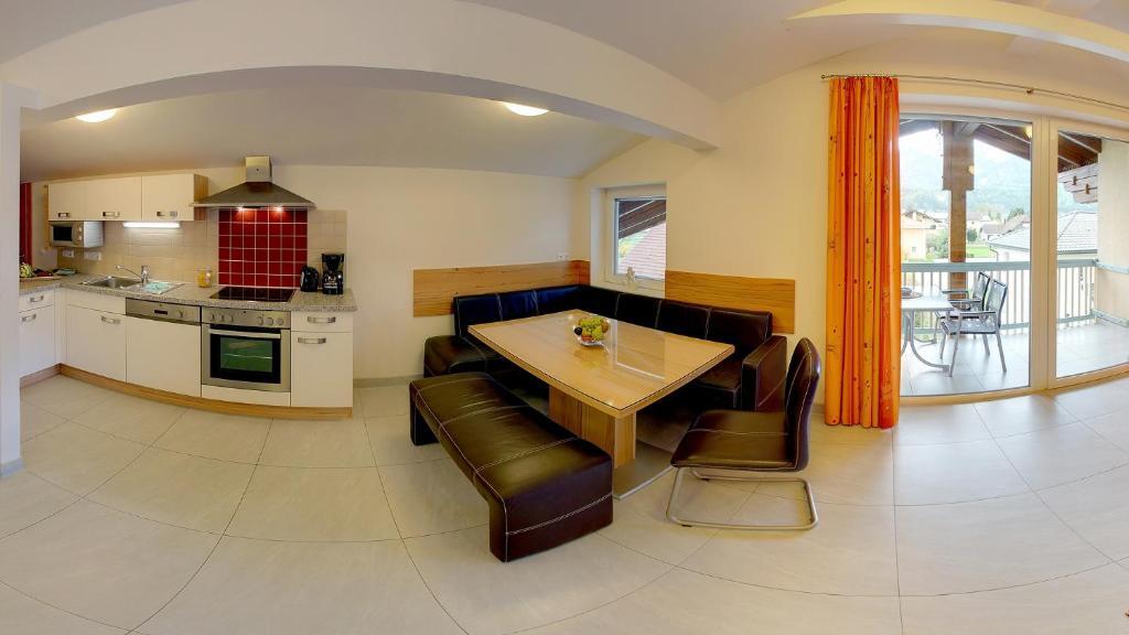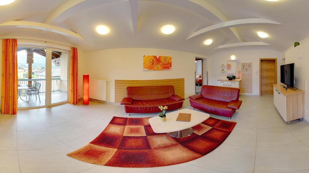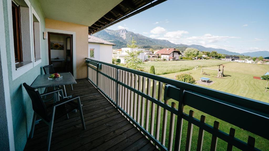 Die Karglhof Villa in Faak am See bietet geräumige Apartments mit einem Balkon oder einer Terrasse mit Aussicht auf die umliegenden Berge.