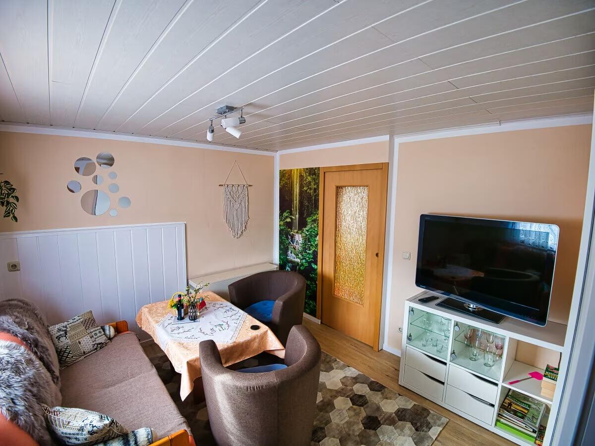 1 Schlafraum 1 Wohnraum mit Sat TV 1 Küche komplett eingerichtet Dusche/WC Bettwäsche