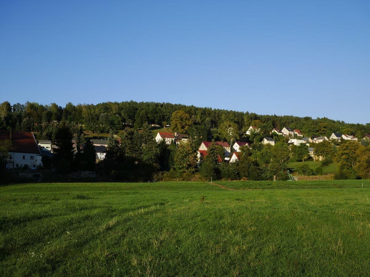 Unsere Ferienwohnungen befinden sich in einem separatem Ferienhaus mit getrennten Eingängen und einer überdachten Terrasse. Von hier aus haben Sie einen schönen Blick ins Elbtal mit seinen Bergen.