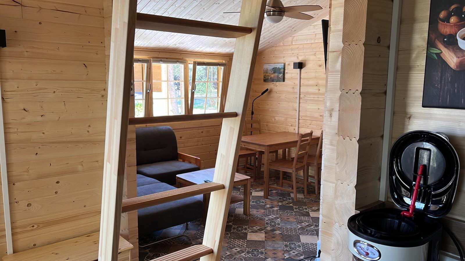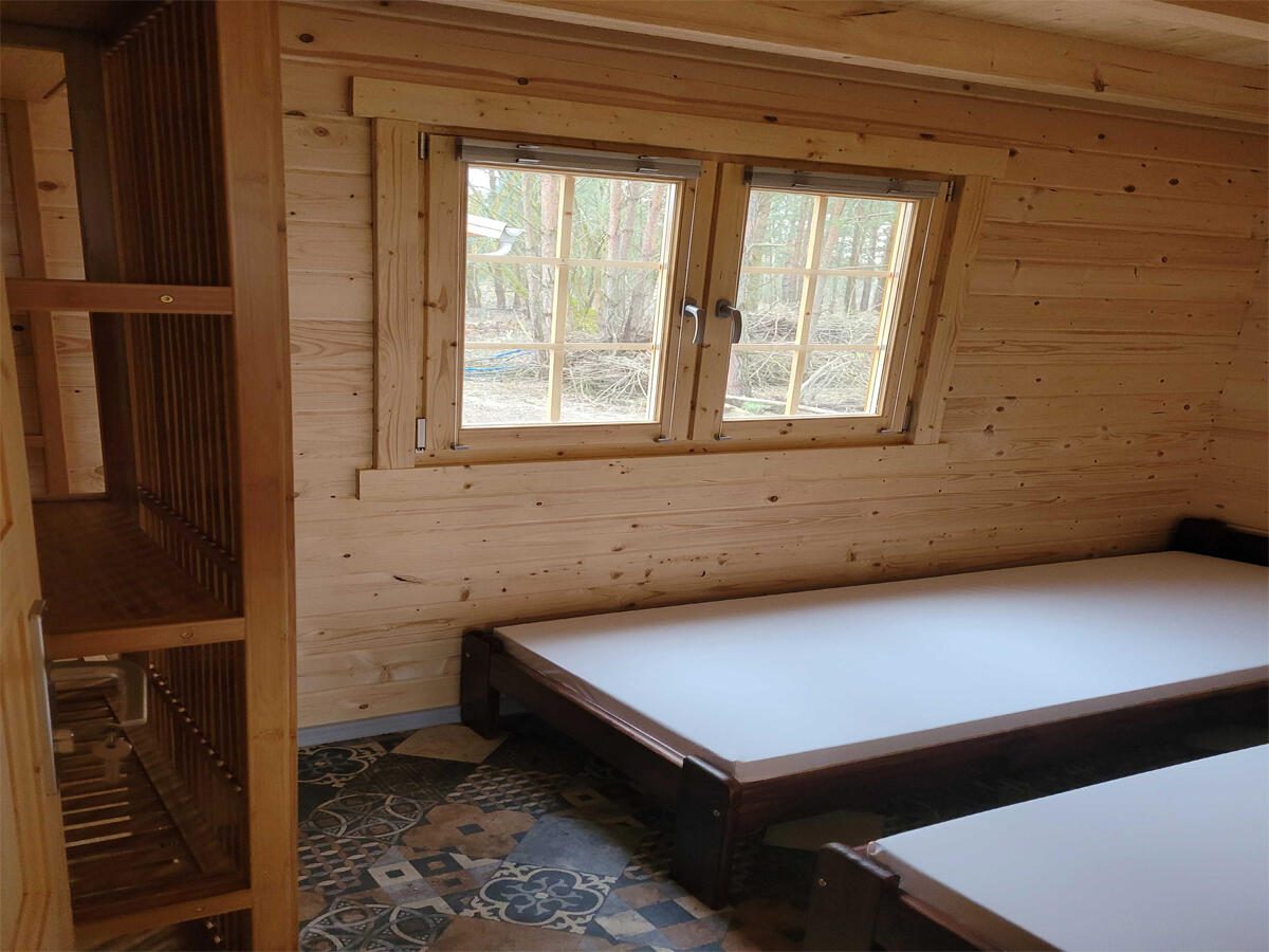 Es gibt im Ferienhaus zwei Betten im Schlafzimmer, zwei Aufbettungen (Schlafsofa) im Wohnzimmer, sowie zwei Aufbettungen auf dem Schlafboden, welche über eine Leiter erreichbar sind.