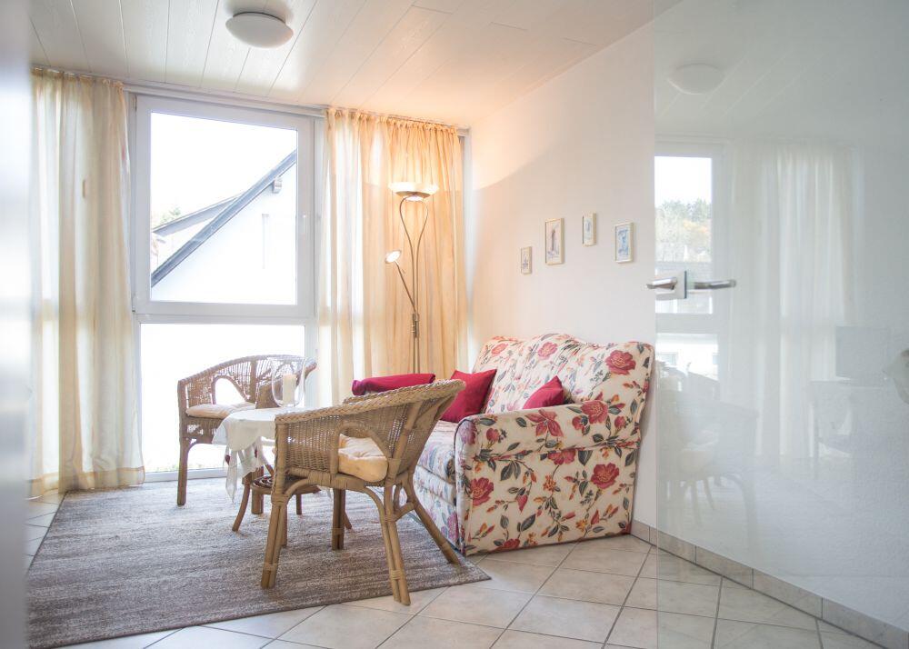 – Wohnraum mit gemütlicher Couch, Sat-TV und einer Essecke,