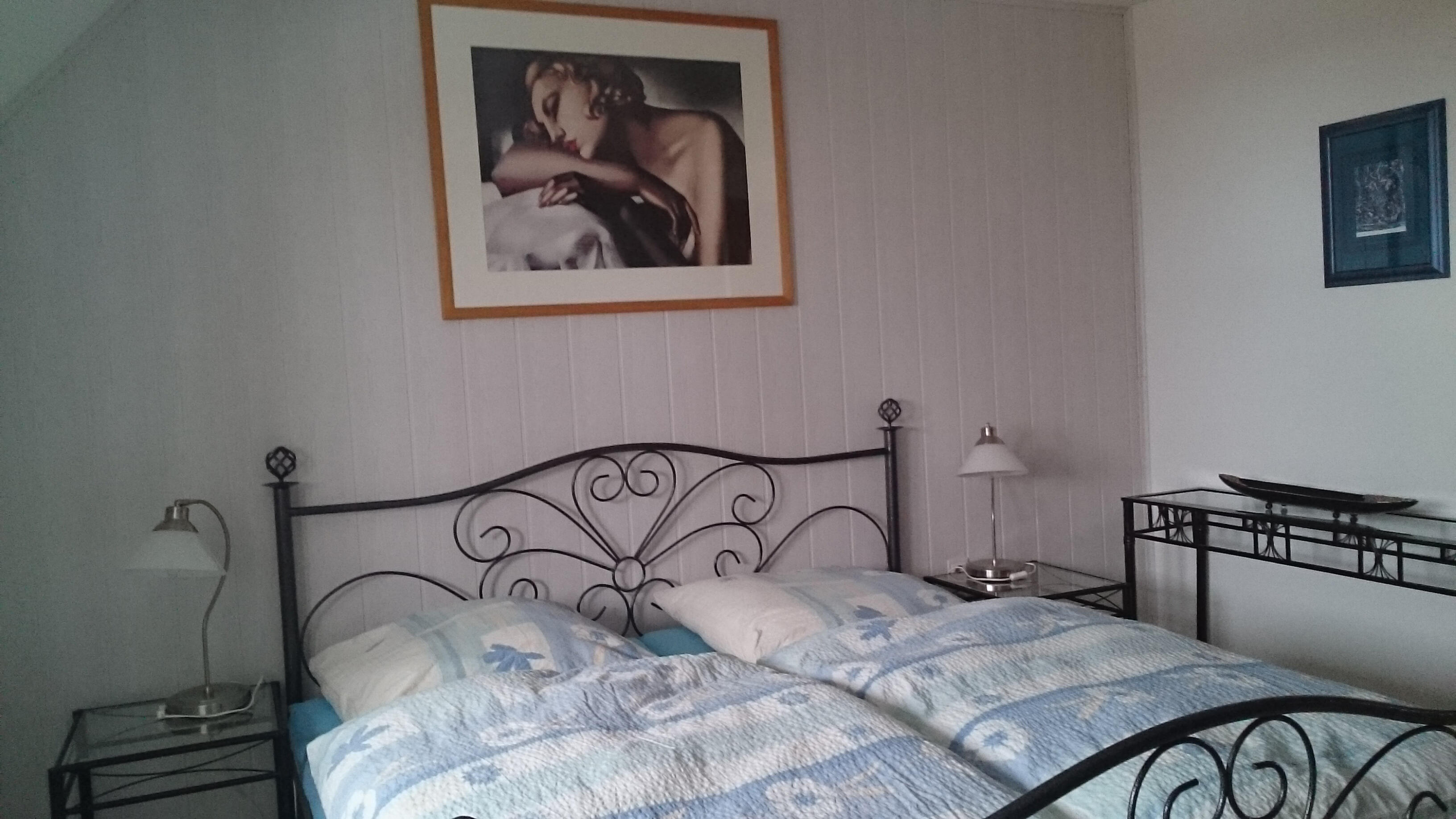 Unsere großzügige Familienwohnung verfügt über ein Schlafzimmer mit französischen Bett, ein geräumiges Wohnzimmer mit einer Schlafcouch, sowie eine Wohnküche und Bad mit Dusche und Tageslicht im Obergeschoss des Hauses. Die Einrichtung ist sehr individuell und besteht überwiegend aus Einzelstücken für Menschen, die das Besondere lieben.