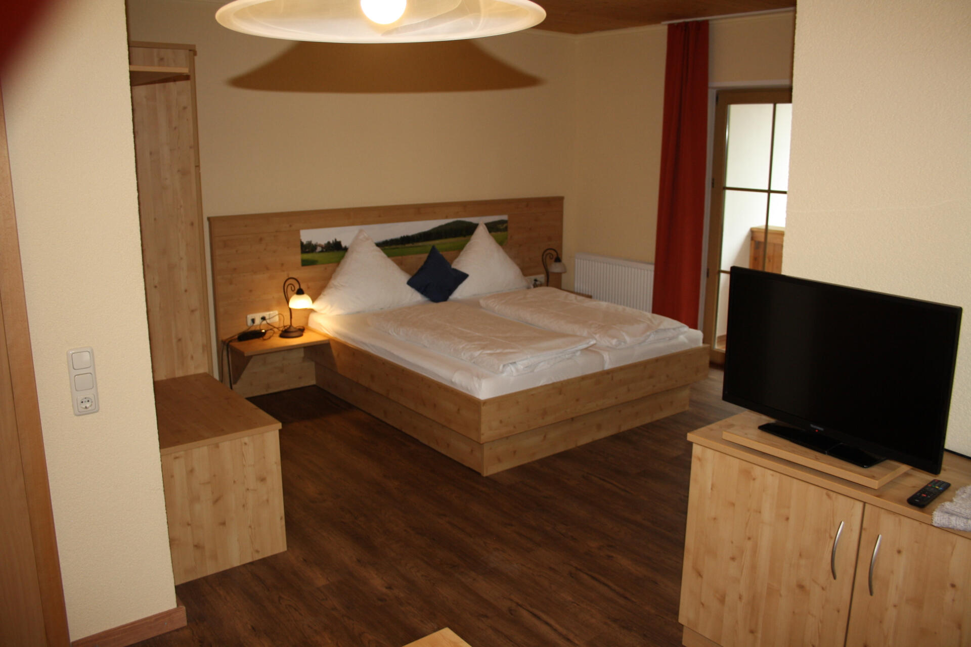 Unser Doppelzimmer ist ca. 28 qm groß und ist ausgestattet mit Doppelbett, Sofa, Bad mit Dusche/WC.