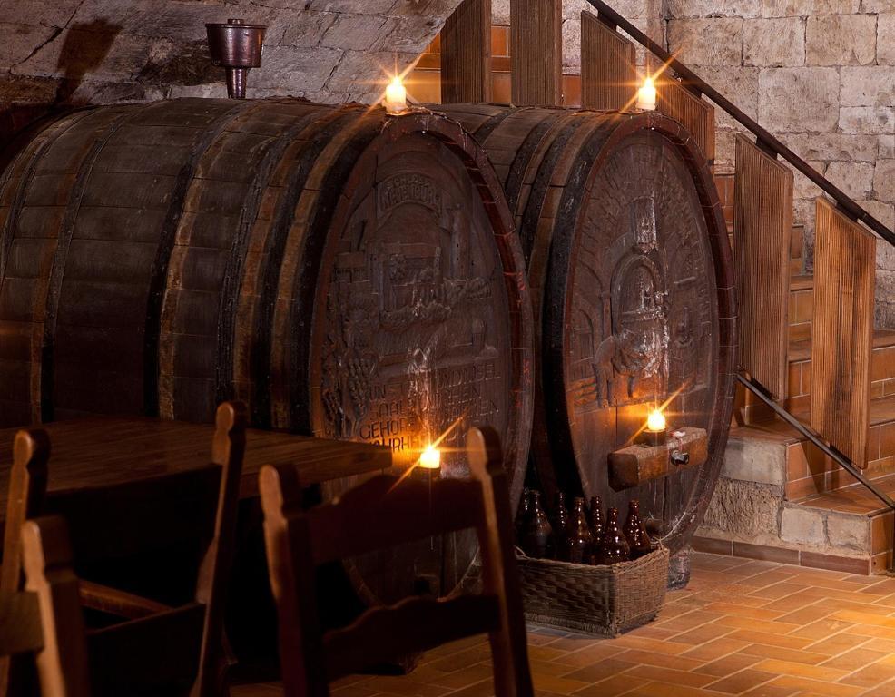 3 Weinstuben, einen Innenhof und einen Weinkeller mit große Auswahl an regionalen Weinen und regionaler Küche