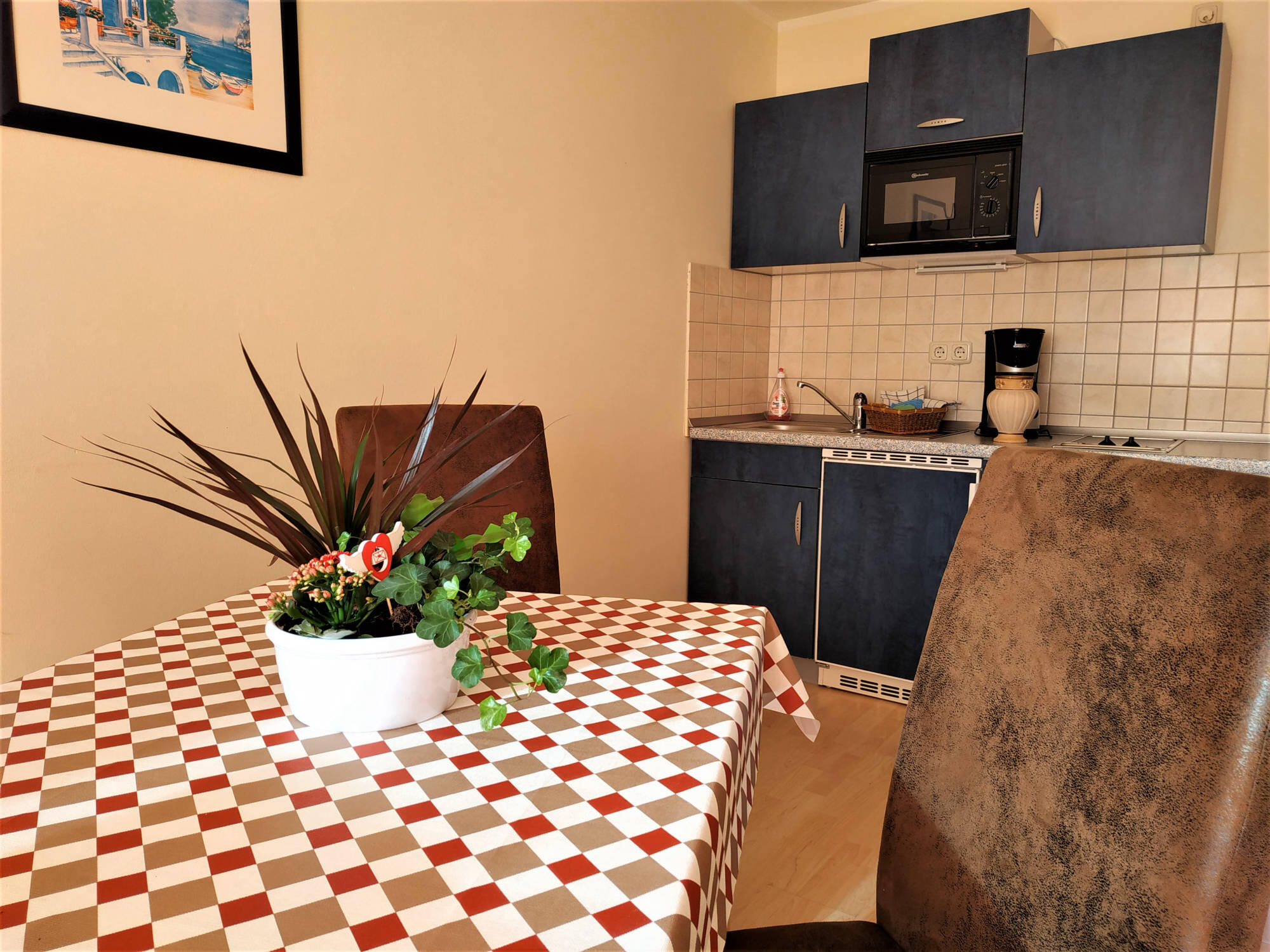 Auf unseren Grundstück im Haupthaus befinden sich 2 Ferienwohnungen in der 1. Etage mit 2 Balkonen und Seeblick, 2 Ferienwohnungen ebenerdig mit Balkon und Terrasse und 2 Ferienwohnungen in unserem schönen Nebenhaus im Gartenbereich mit großem südseitigem Balkon oder Terrasse. Im Wohnzimmer befinden sich eine ausziehbare Schlafcouch mit Couchtisch, Leselampe, Sat-TV und Anrichte. Von der Küche mit Esstisch und 4 Stühlen gelangen Sie auf den seeseitigen Balkon. Das Schlafzimmer mit Doppelbett, Nachttischen und großem Kleiderschrank liegt hofseitig in absoluter Ruhe genau wie das Bad mit Dusche, WC, Waschtisch und Handtuchtrockner. Die hofseitigen Balkone und ebenerdig die Terrassen liegen Richtung Osten in der Morgensonne. 1 PKW-Stellplatz pro Ferienwohnung, überdachte E-Bike Stellplätze.