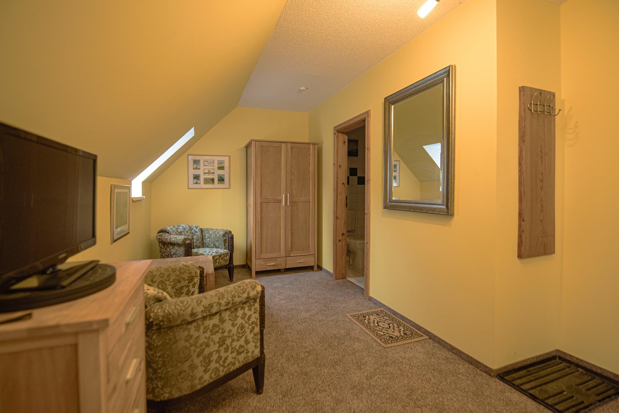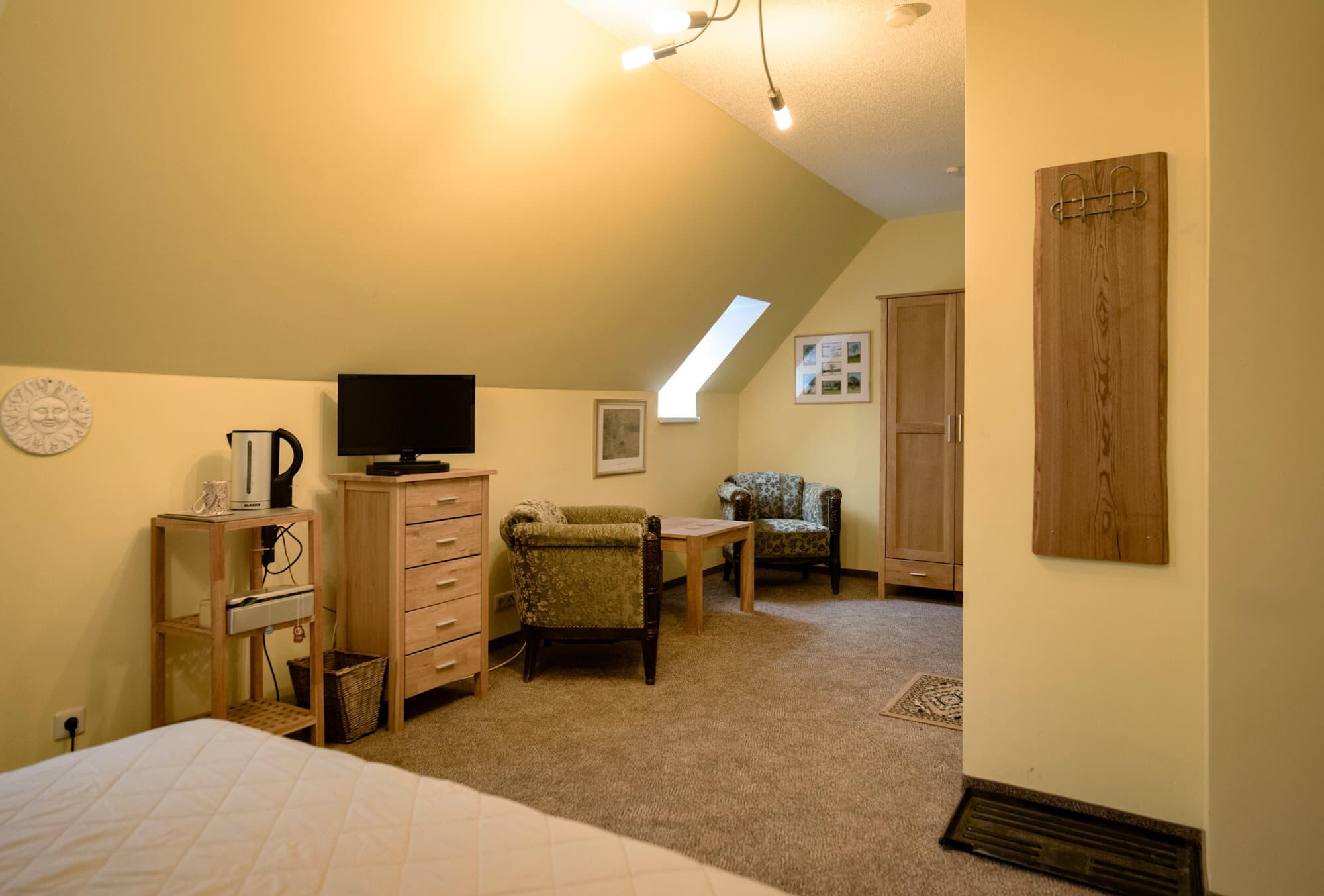 1997 nach Blitzeinschlag abgebrannt und 1998 originalgetreu wiederaufgebaut verfügt es über vier komfortable, gemütliche Zimmer. Zeitgemäße Ausstattung und historisches Ambiente gehen Hand in Hand.