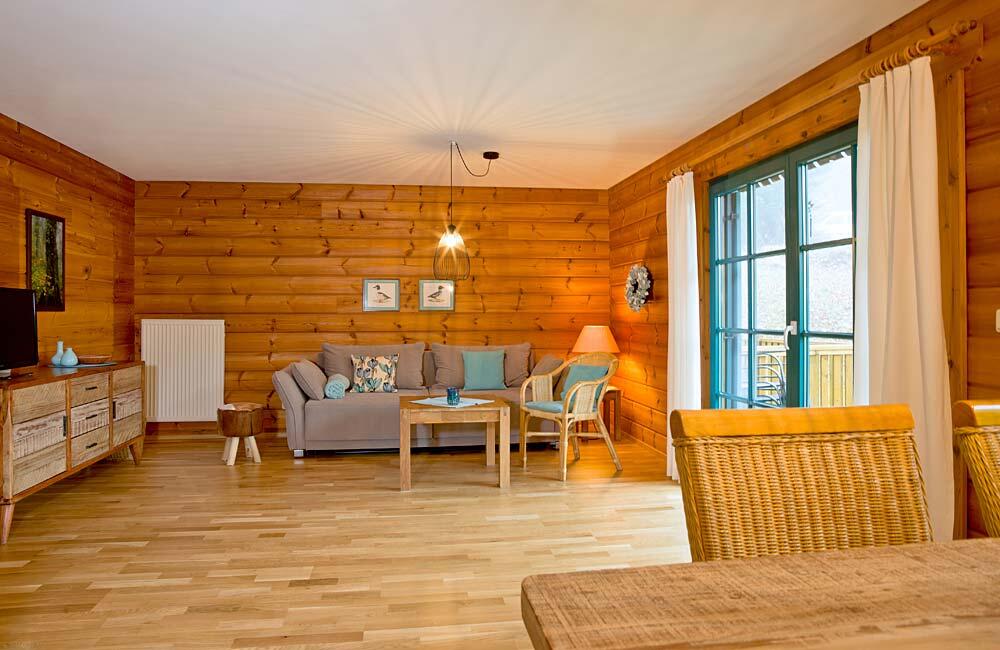 Heimeliges und gesundes Wohnen im Bioholzhaus mit 5 Wohnungen von 36 qm bis 61 qm im Park mit Badesse und Tennisplätzen und Tennisschule