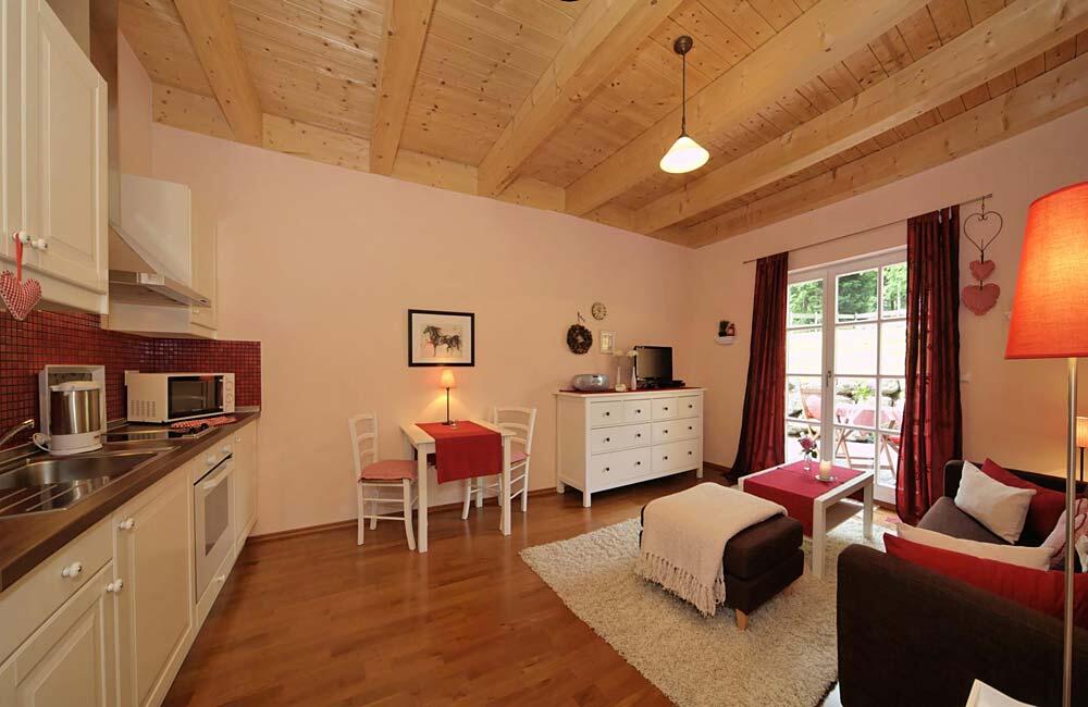 Sie wohnen in einem nach biologischen Gesichtspunkten erbautem Holzhaus. Die fünf Ferienwohnungen sind liebevoll und individuell eingerichtet und mit allem Komfort ausgestattet. Die aus 80-jährigen Baumbestand gewonnenen Holzbohlen sorgen für eine warme und heimelige Atmosphäre. Wenn Sie zu uns kommen, fühlen Sie sich gleich "wie zu Hause".