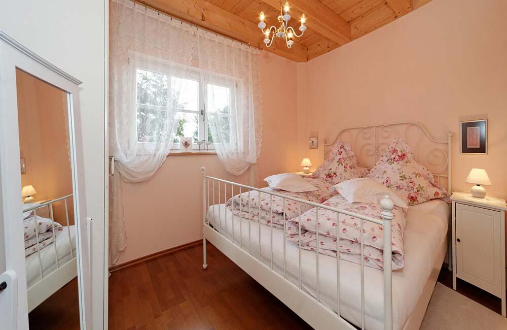 Schlafzimmer: Doppelbett mit erstklassiger Komfortbettenausstattung und Matratzen (2x 80x 200cm), romantischer Bettwäsche und großen Schrank (keine Aufbettung und kein Kinderbettchen möglich)