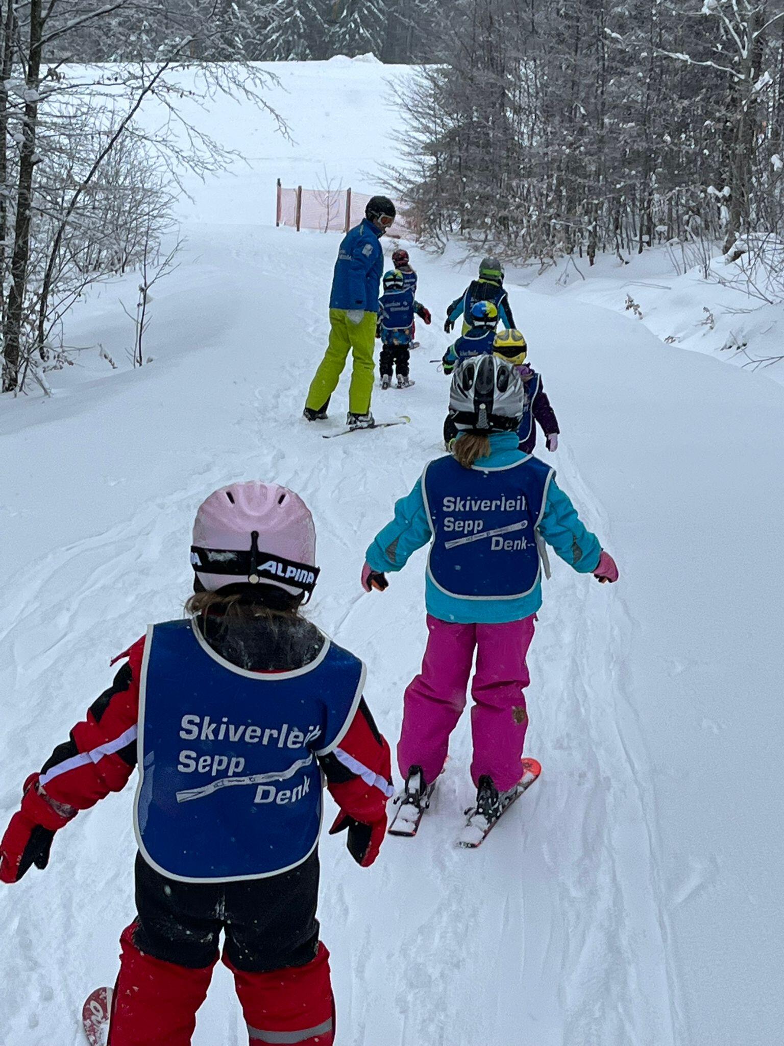 Zum Haus gehört auch unsere eigene Skischule Mitterdorf die im Skigebiet mit 2 Sesselbahnen und 3 Schleppliften Kindern und Erwachsenen das Skifahren erlernt.