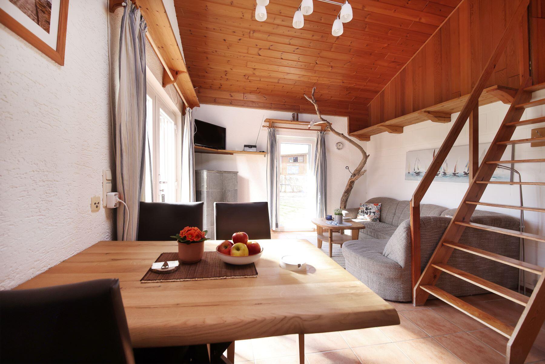 Das Haus ist etwa 40 m² klein (plus einem Schlafboden) und für bis zu 4 Personen geeignet. Es steht bei uns auf dem Grundstück mit Blick auf den Kinderspielplatz, alle Angebote des Hofes (Badeteich, Ponyreiten, Fahrräder, etc.) können selbstverständlich mit genutzt werden.