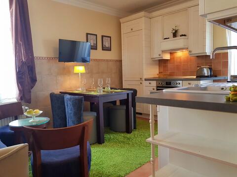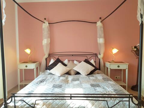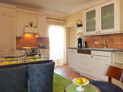 Im ersten Schlafzimmer träumen Sie in einem Himmelbett und in dem zweiten wartet auf sie ein königliches Bett aus Edelmessing. Im beiden Schlafzimmer ist auch genug Platz für ein mitgebrachtes Babyreisebett. Hochwertige Einrichtung und eine harmonische Farbgestaltung der gesamten Wohnung sorgen für das Wohlgefühl in Ihrem Urlaub.